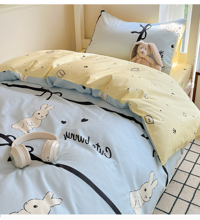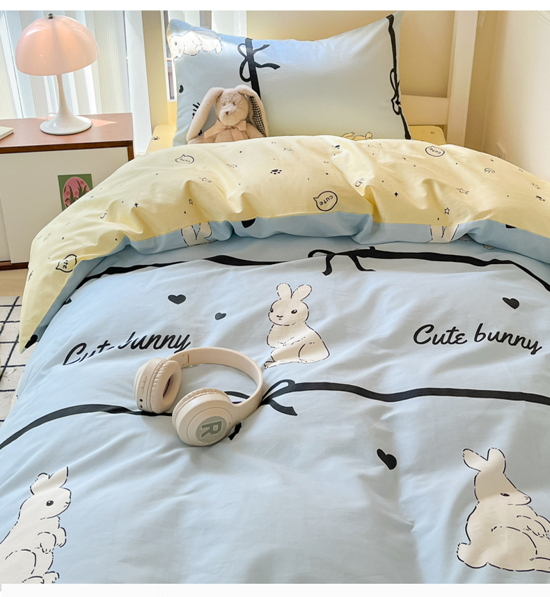 吉象家纺 2025新款全棉印花款三件套 玉兔-浅蓝