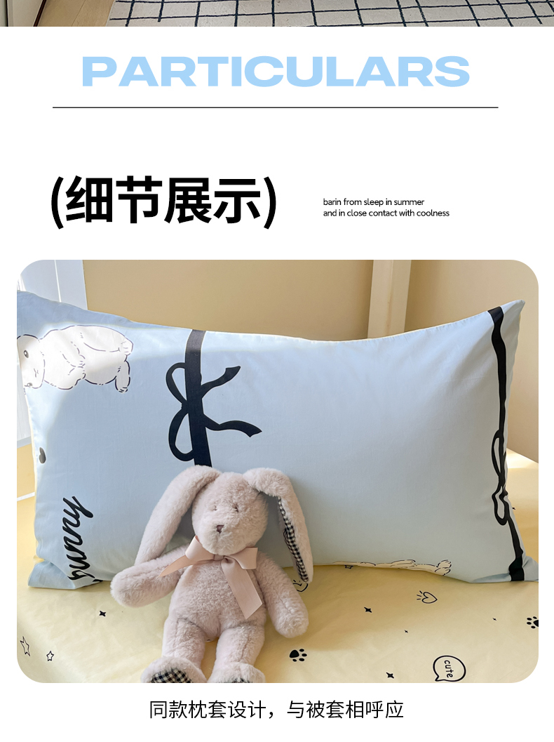 商品名称:吉象家纺 2025新款全棉印花款三件套 玉兔-浅蓝