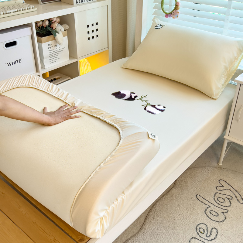 商品名称:席世家 2024新款40支13372全棉绣花学生床笠系列-熊猫抱竹 熊猫抱竹-奶昔白