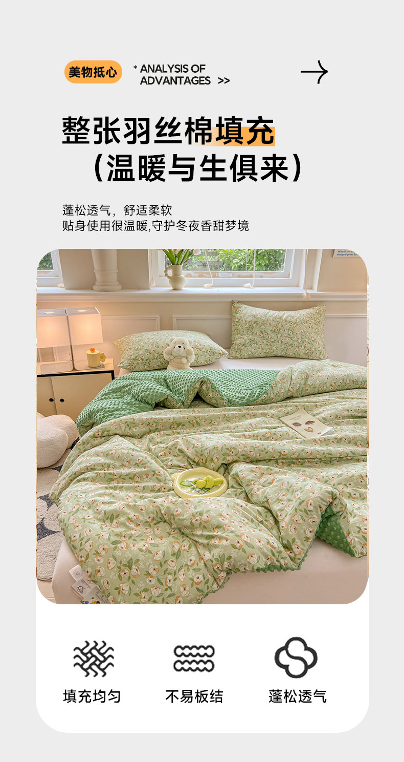• 91家纺网 家纺一手货源 找家纺 居易简 2025新款水洗棉双层纱豆豆被加绒被子被芯直播豆豆绒被被子被芯冬被春秋被 棉花絮语