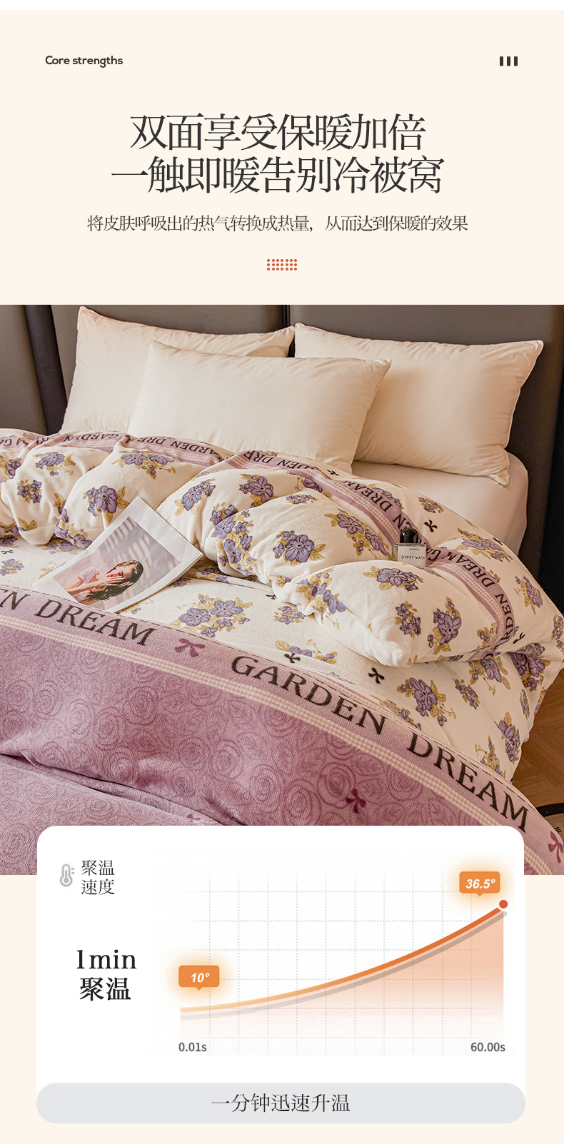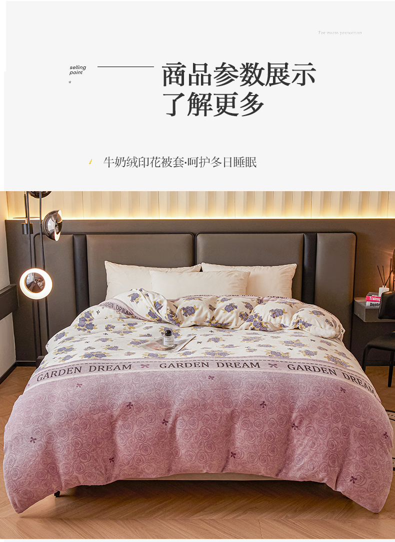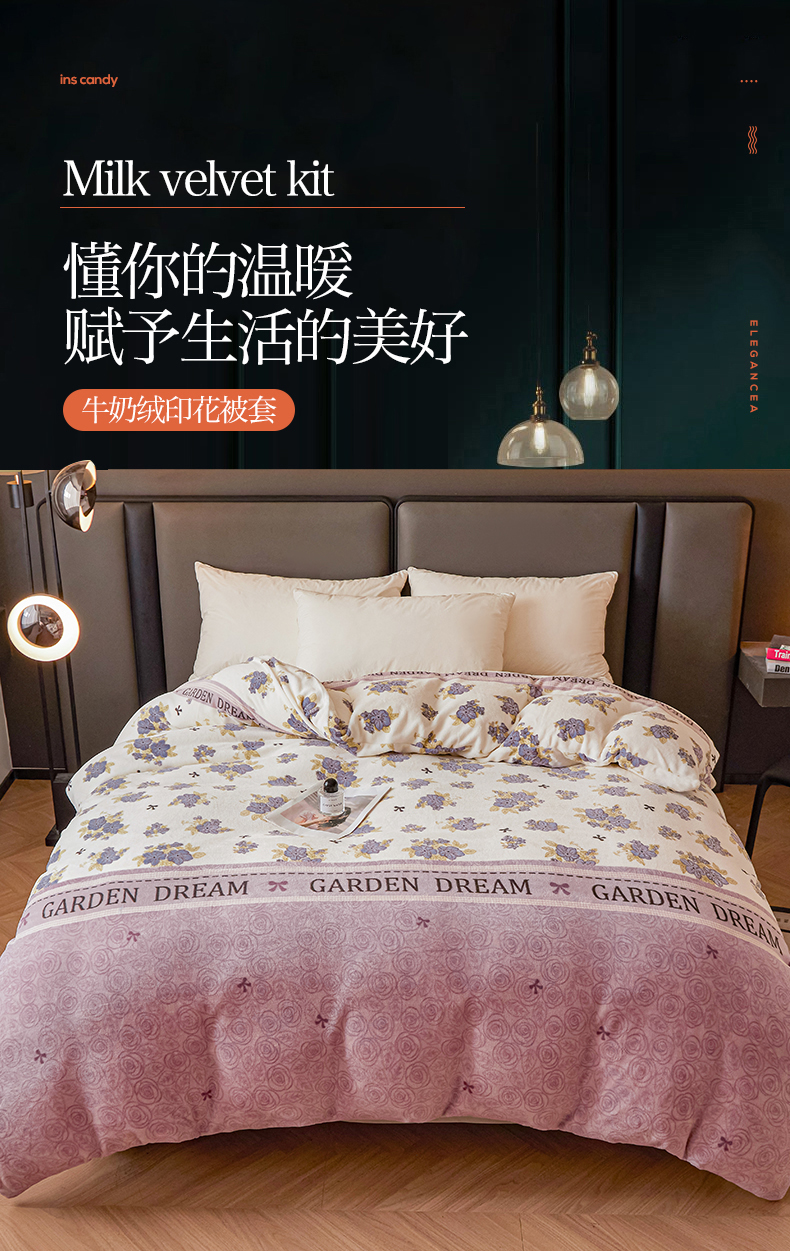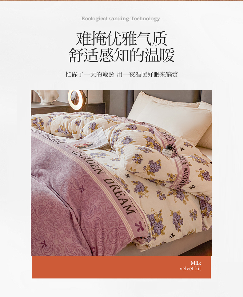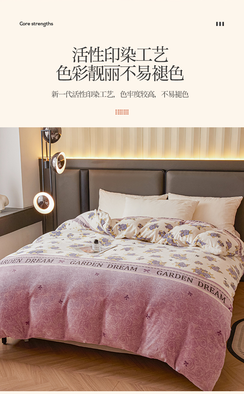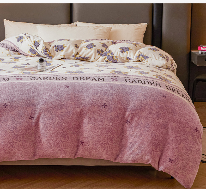 董韵家纺 2025新款高克重全消光牛奶绒法莱绒金貂绒印花单品被套床裙四件套(提供买家秀) 幻想花园
