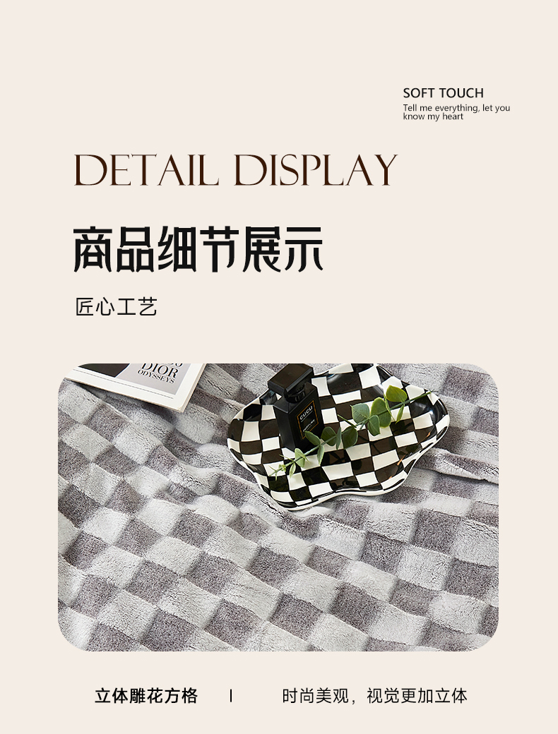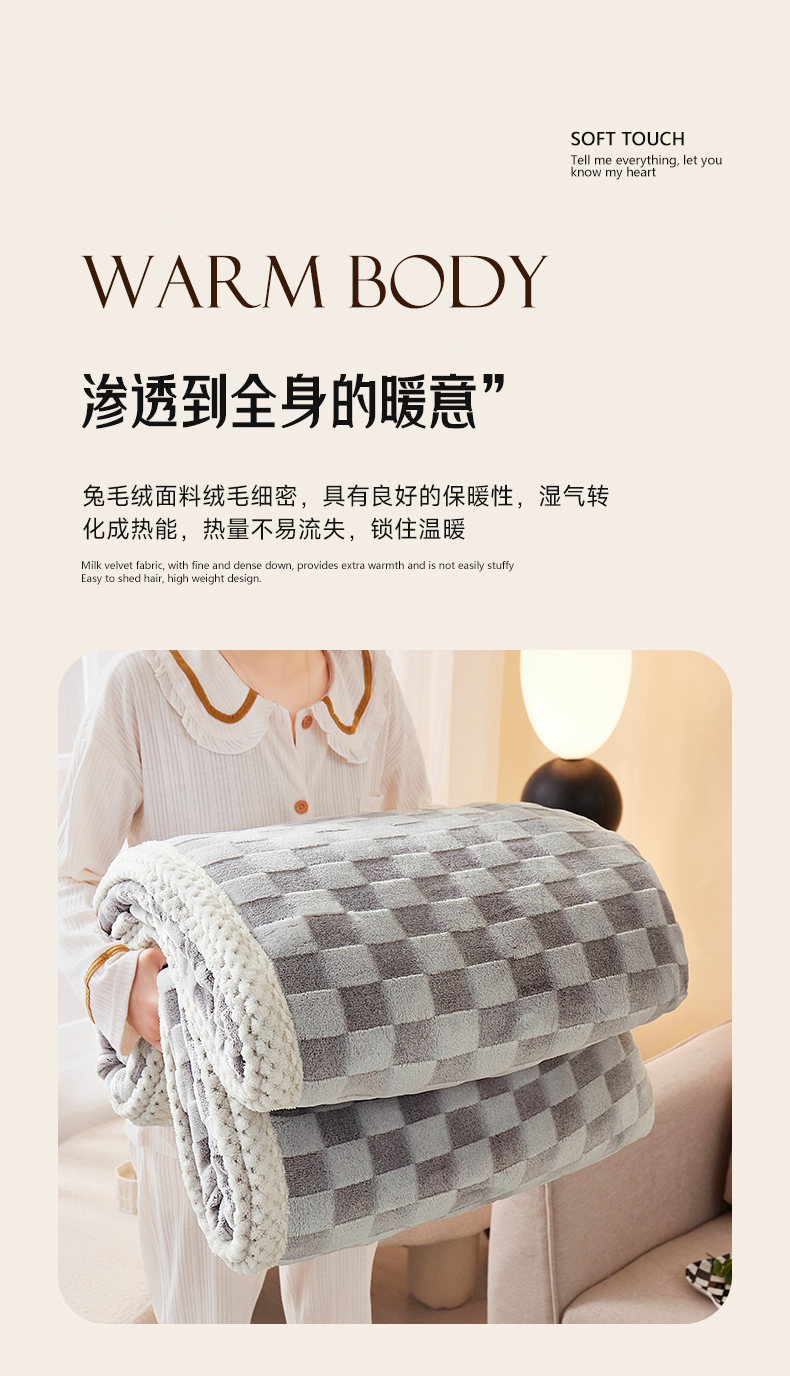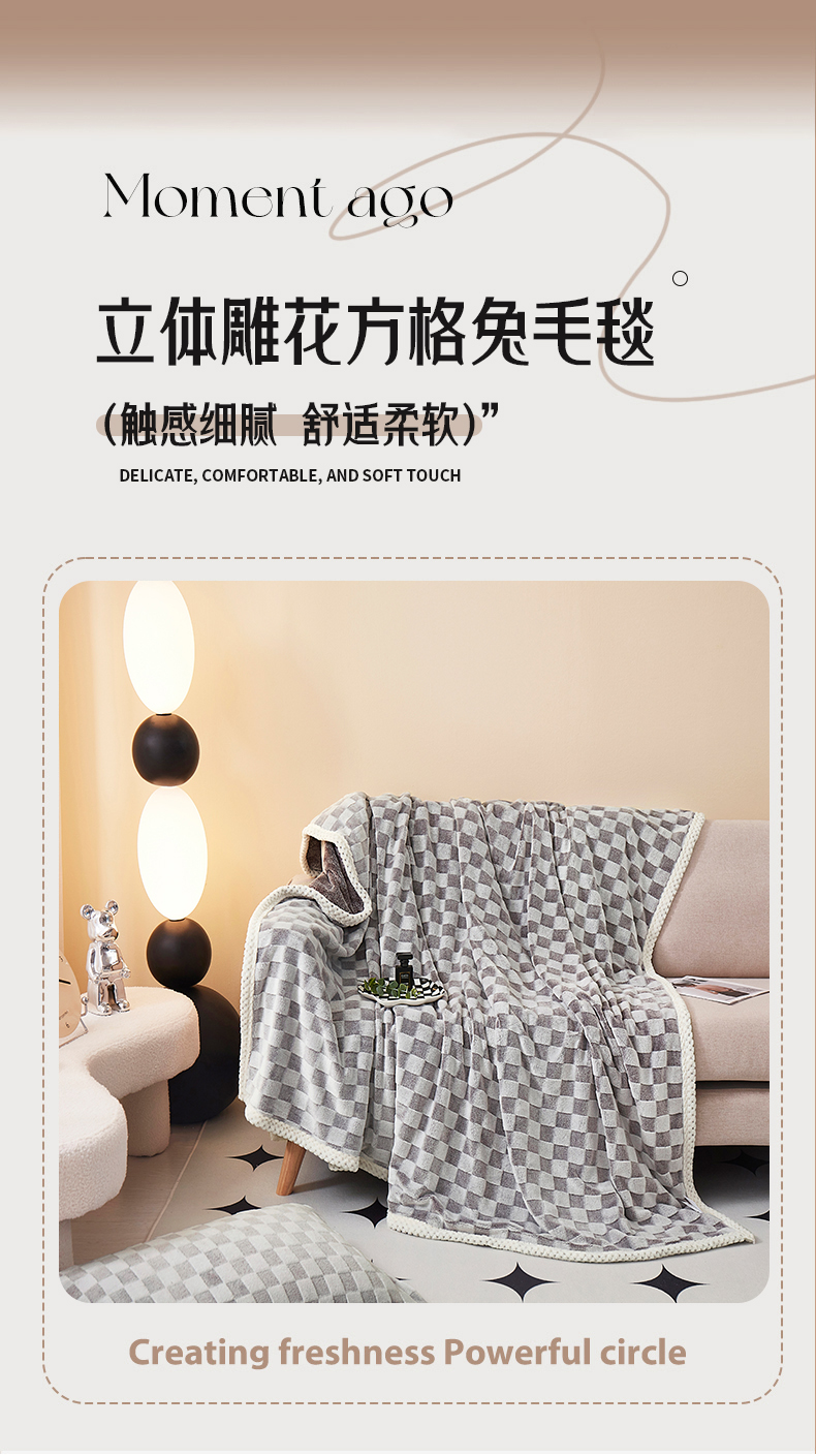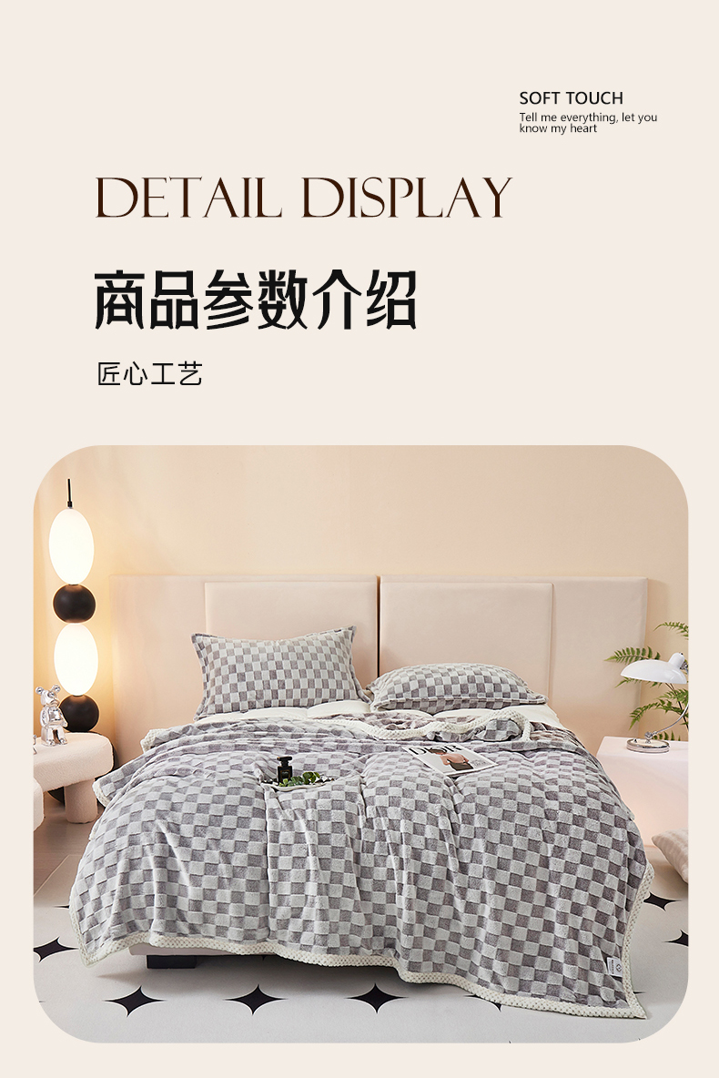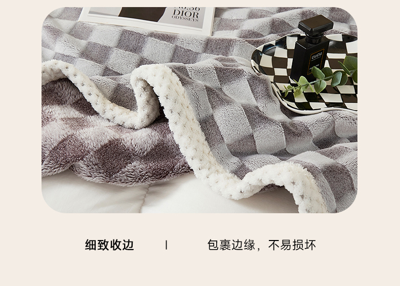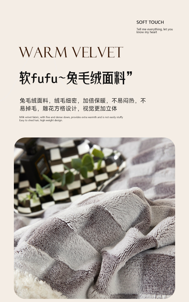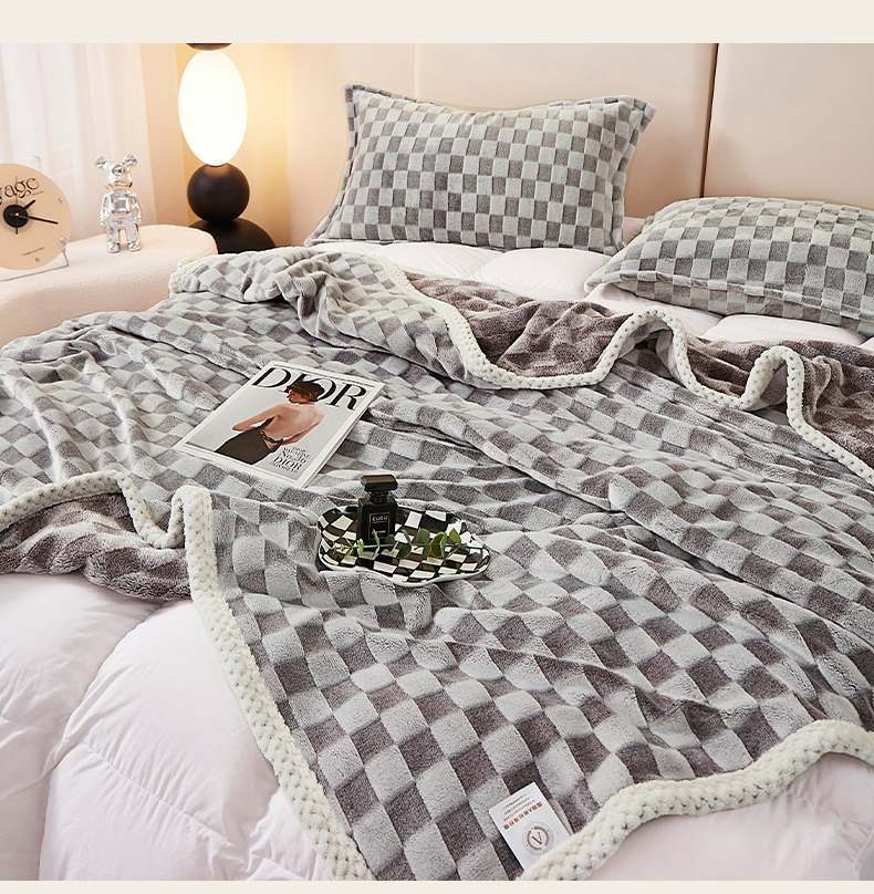 商品名称:肖恩毯业 2025新款兔毛绒方格款毛毯 方格-灰