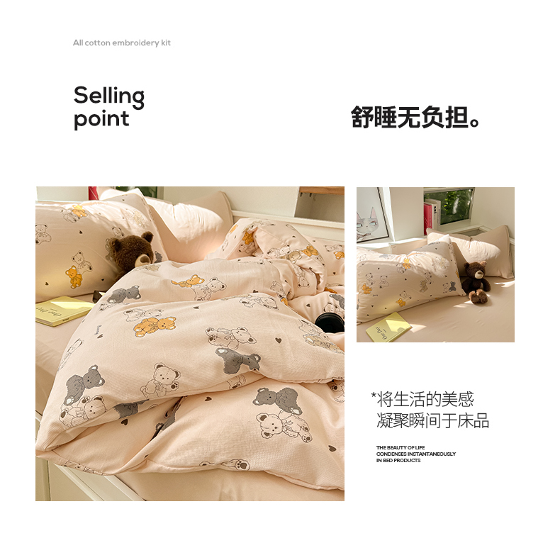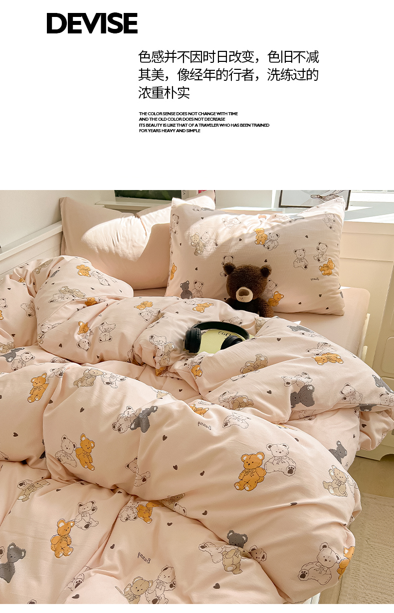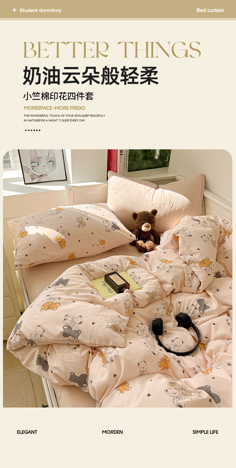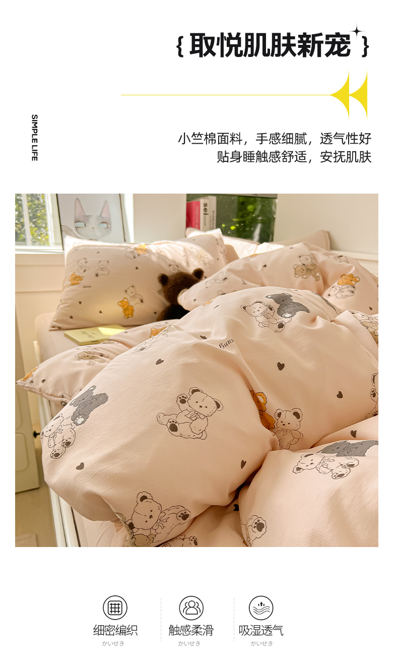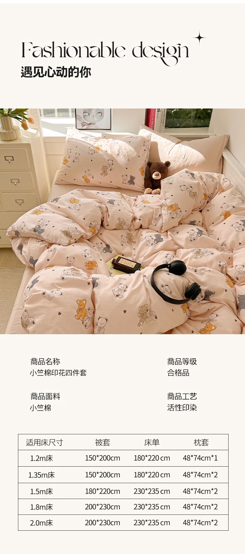 (总)繁花家居 2026简单款水洗棉四件套学生床三件套,小软猫,曲线蝴蝶结,芭乐可丽卷,粉格-小花熊,粉格小豹纹,咖腊肠狗,咖心小熊,红格撞青,幻想乐园