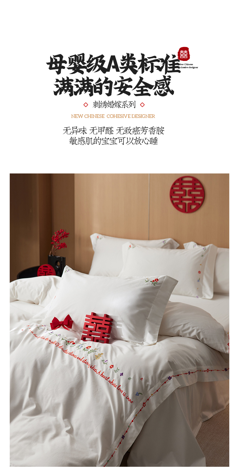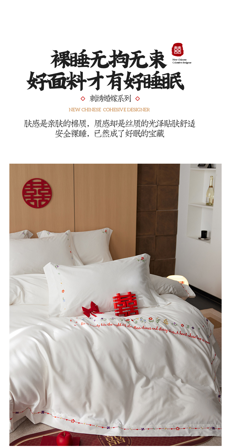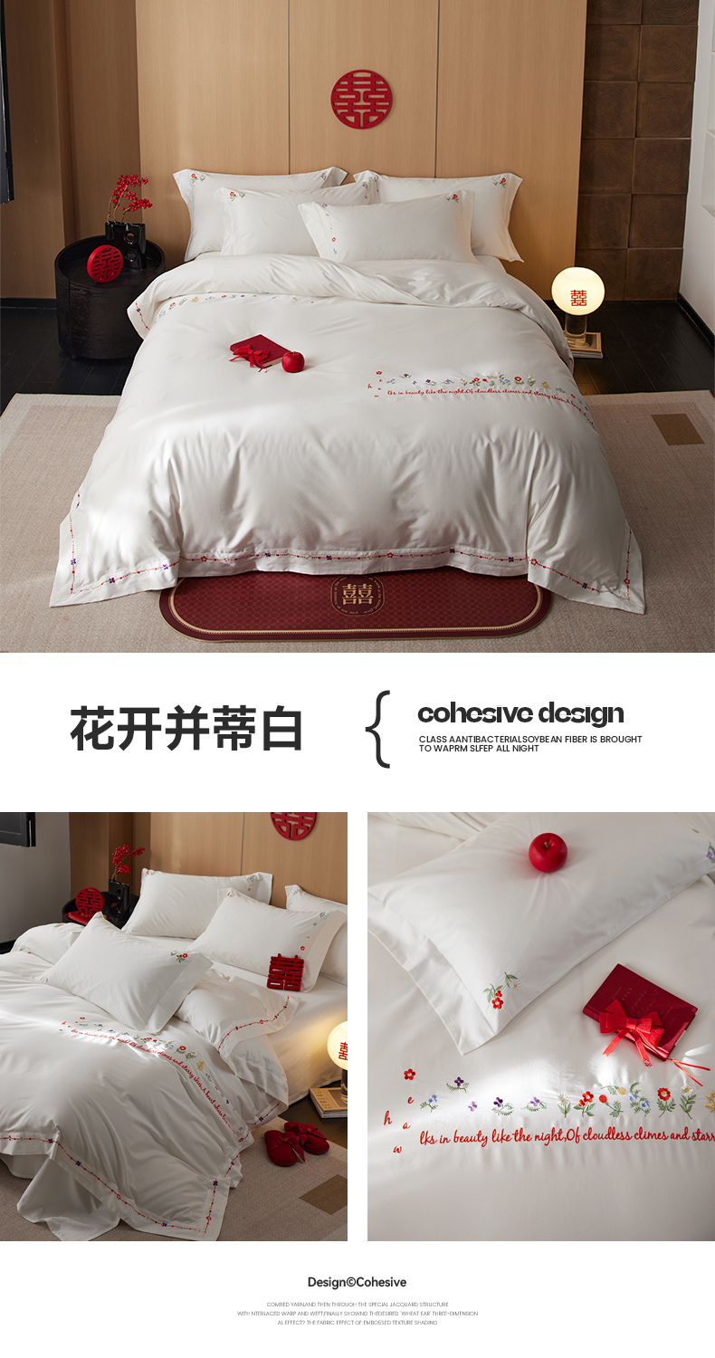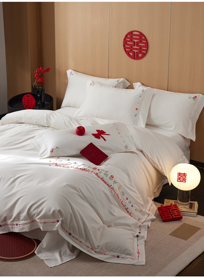 商品名称:简纯主义 2025新款100支长绒棉刺绣四件套花开并蒂系列 花开并蒂白