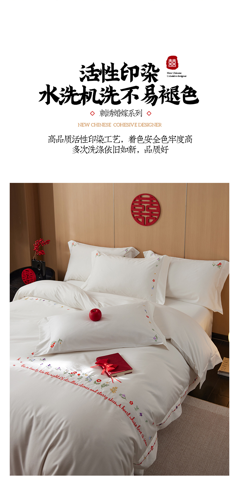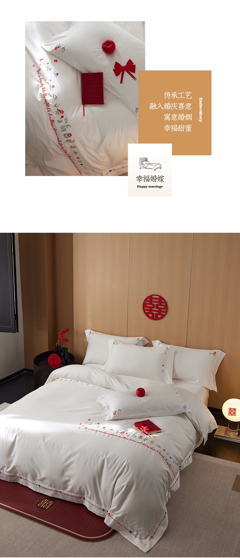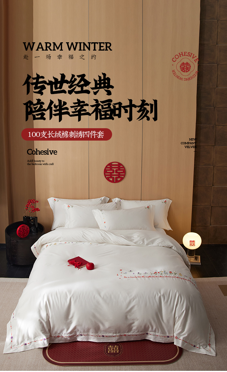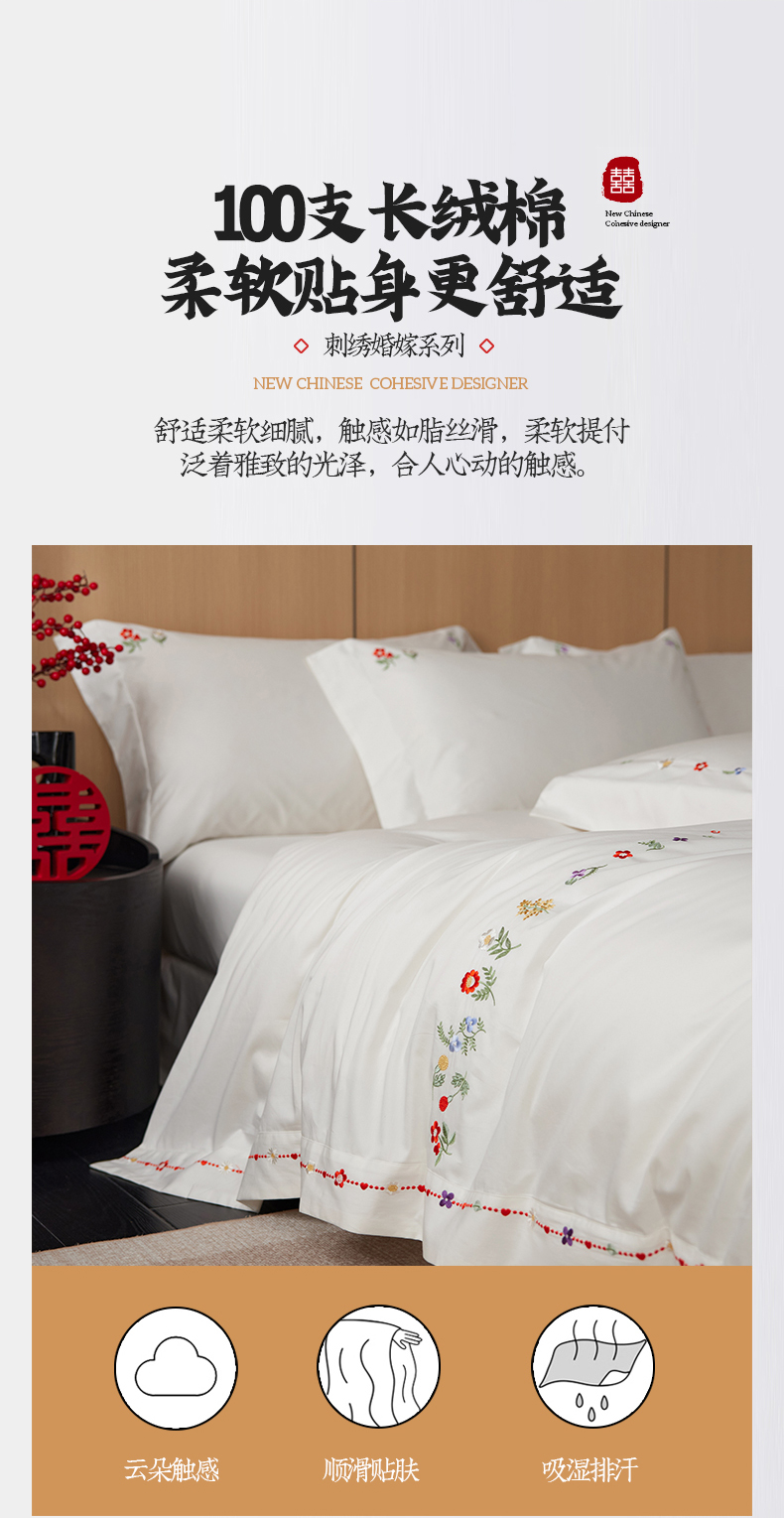 商品名称:简纯主义 2025新款100支长绒棉刺绣四件套花开并蒂系列 花开并蒂白