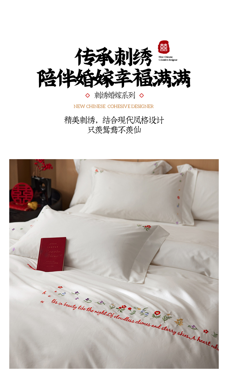 简纯主义 2025新款100支长绒棉刺绣四件套花开并蒂系列 花开并蒂白