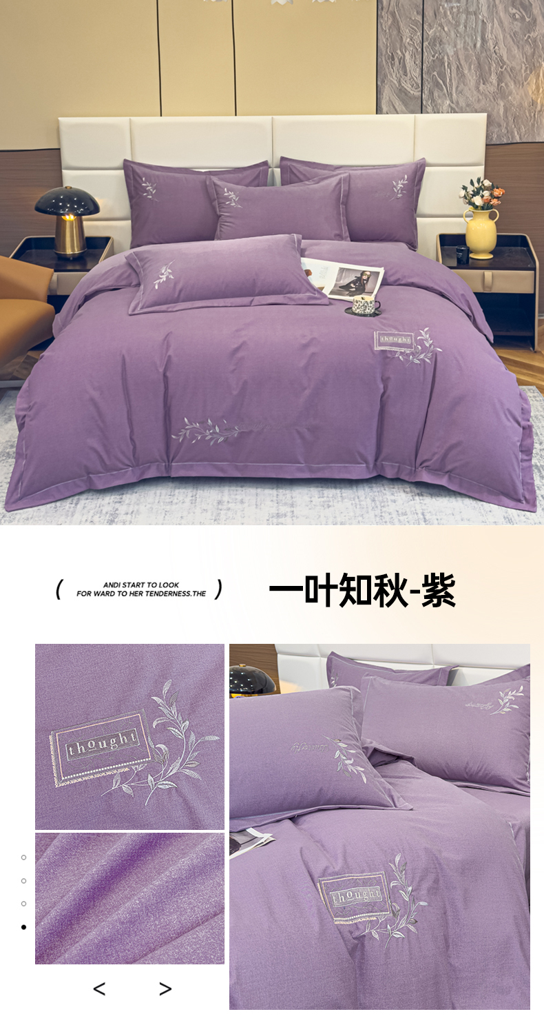 当前位置: 91家纺网 > 商品网购 > 床品套件 > 四件套 > 普通磨毛四件套 > U品汇 2024新品生态加厚长绒棉纯棉绣花全棉磨毛刺绣四件套宽边款直播 一叶知秋-紫
