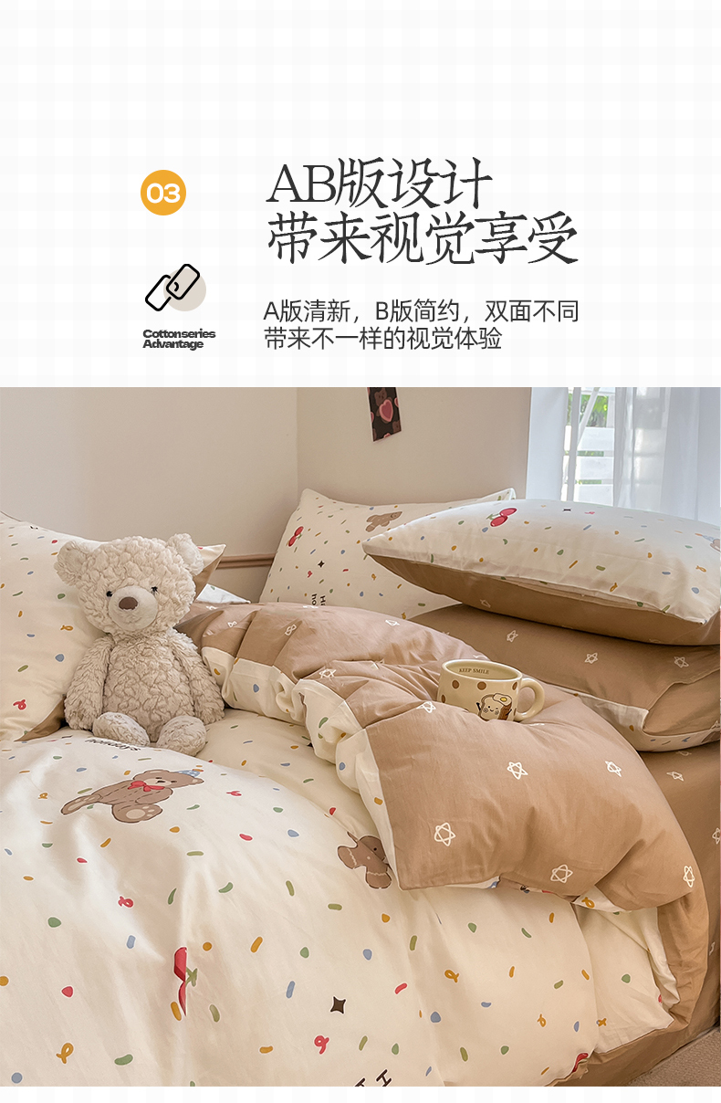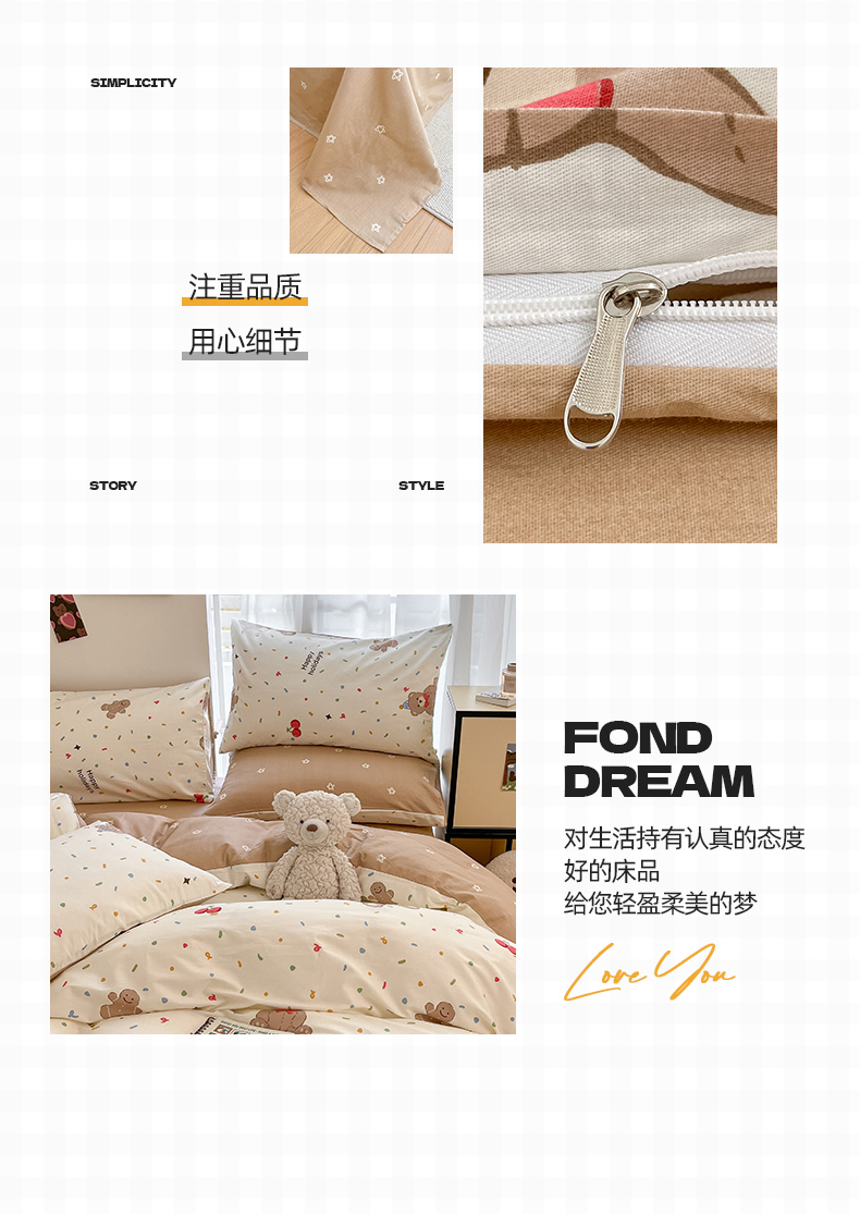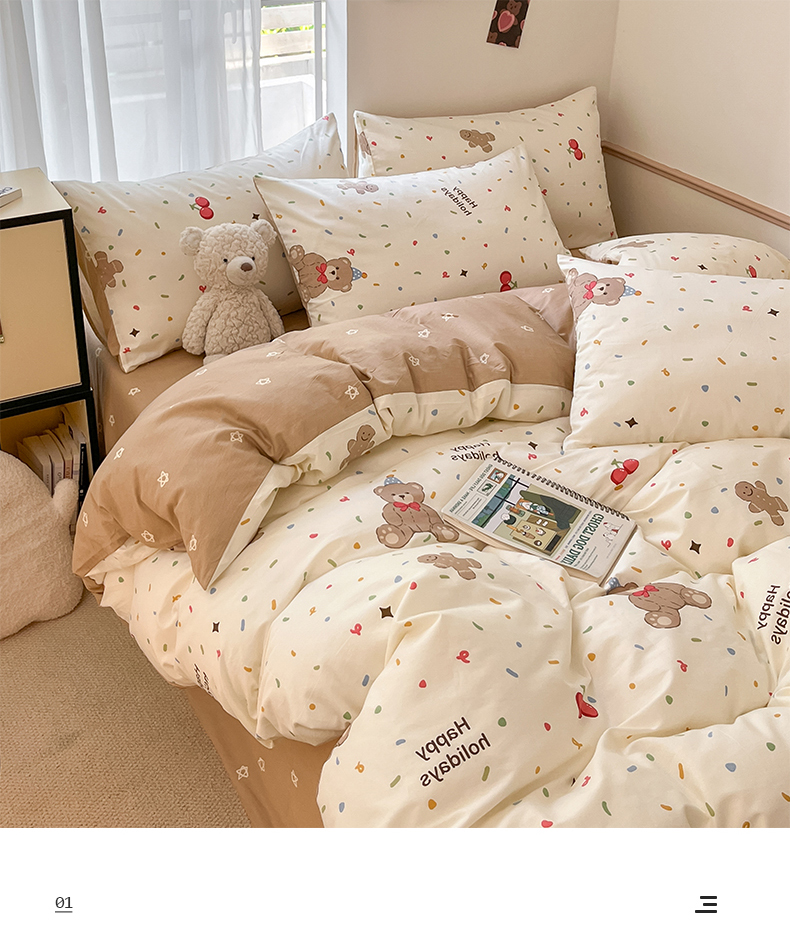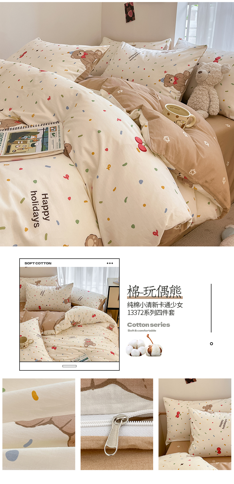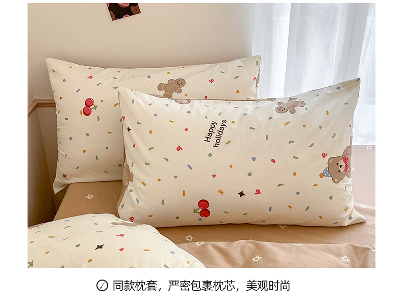 商品名称:桃子家居 2024新款纯棉小清新卡通少女13372系列四件套 棉-玩偶熊