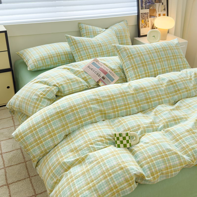 商品名称:星尚家纺 2024新款A类全棉色织水洗棉三四件套系列-单被套 多芙-清水绿