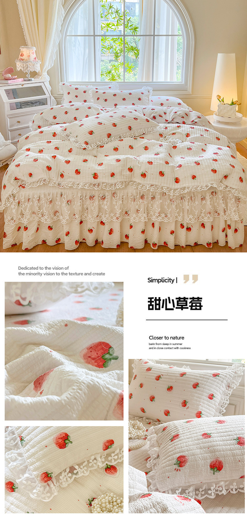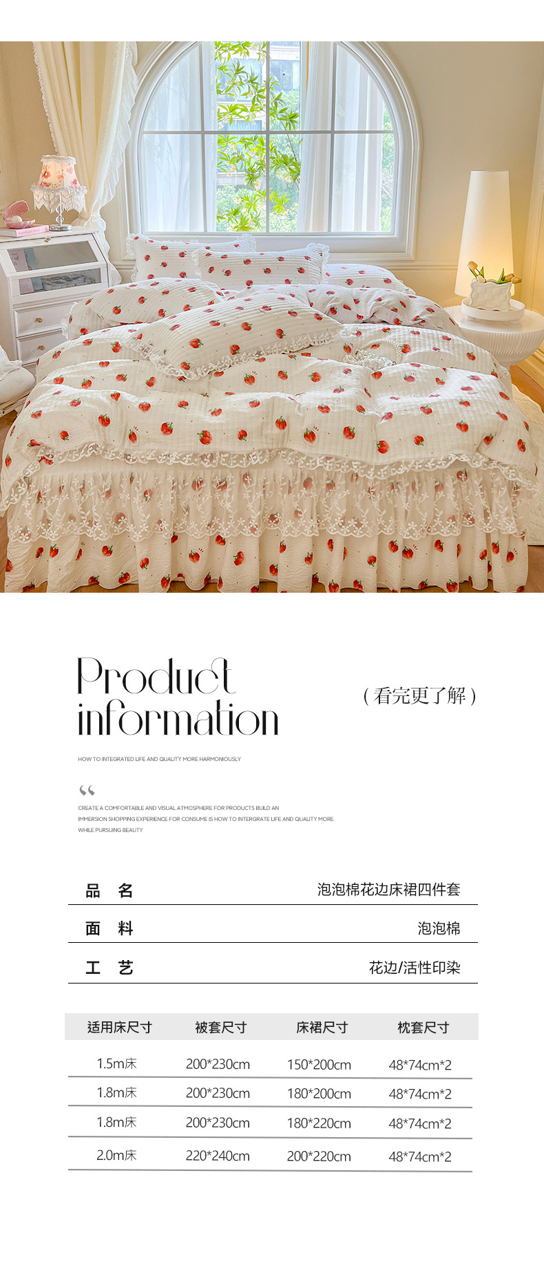 当前位置: 91家纺网 > 商品网购 > 床品套件 > 四件套 > 其它四件套 > 网红馆(ck家纺) 2025新款泡泡棉花边床裙四件套 甜心草莓