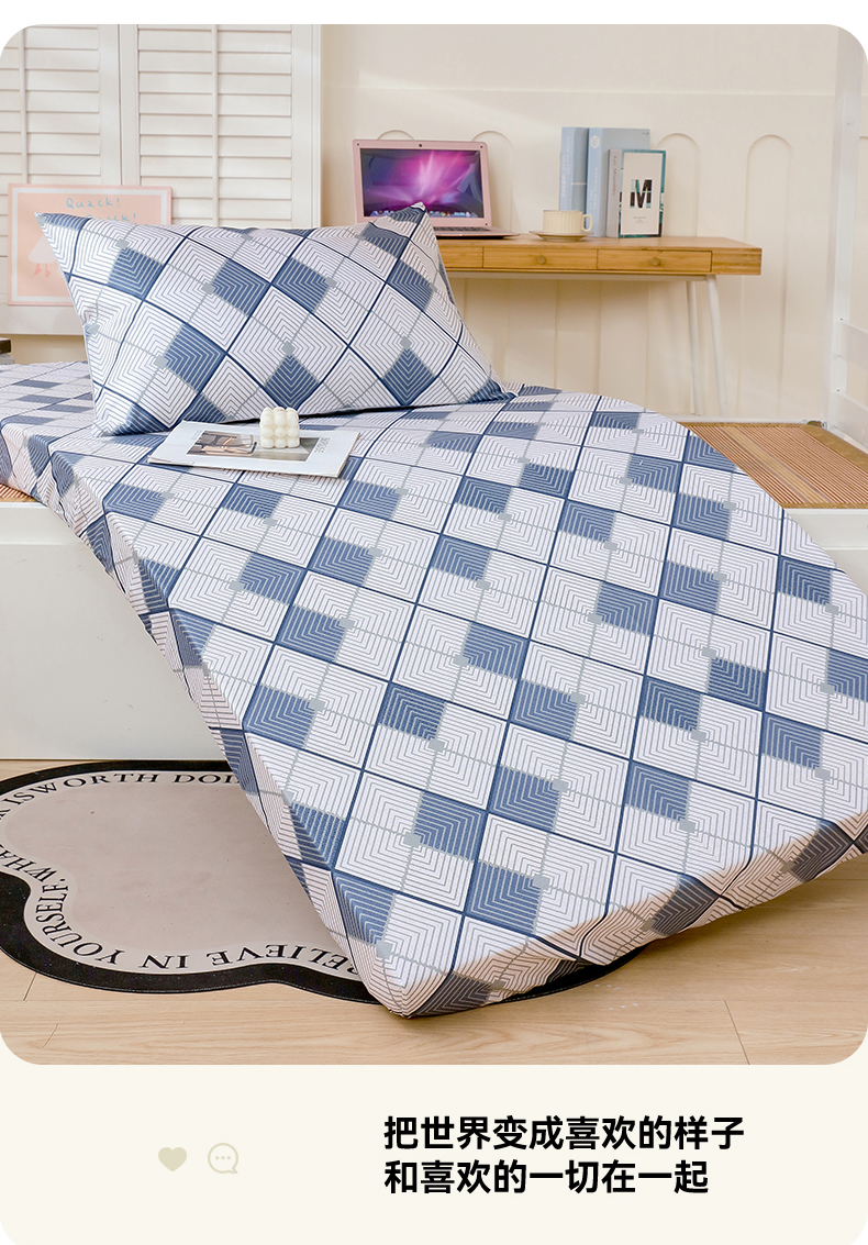 • 91家纺网 家纺一手货源 找家纺 2024新款学生宿舍.13372印花单品床笠 灵动-兰