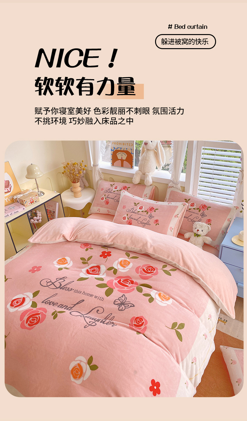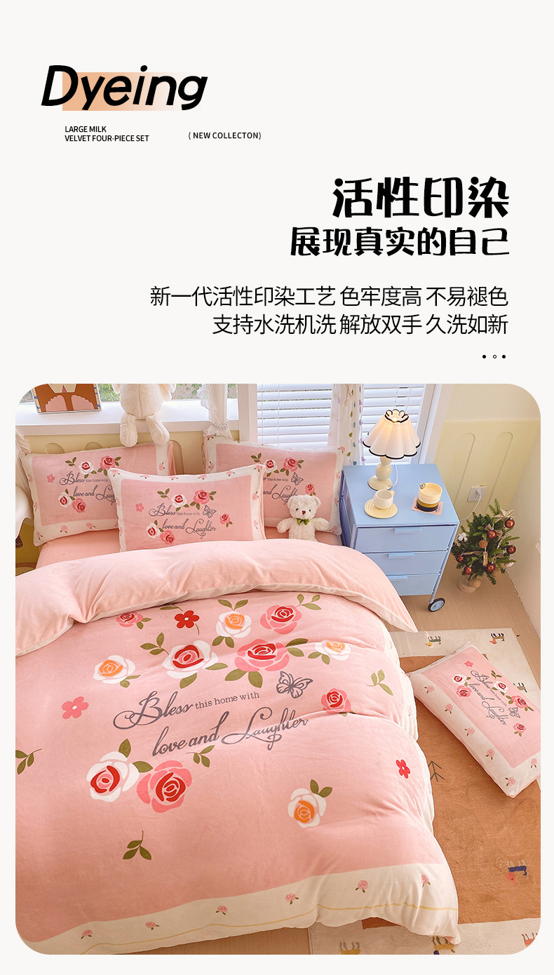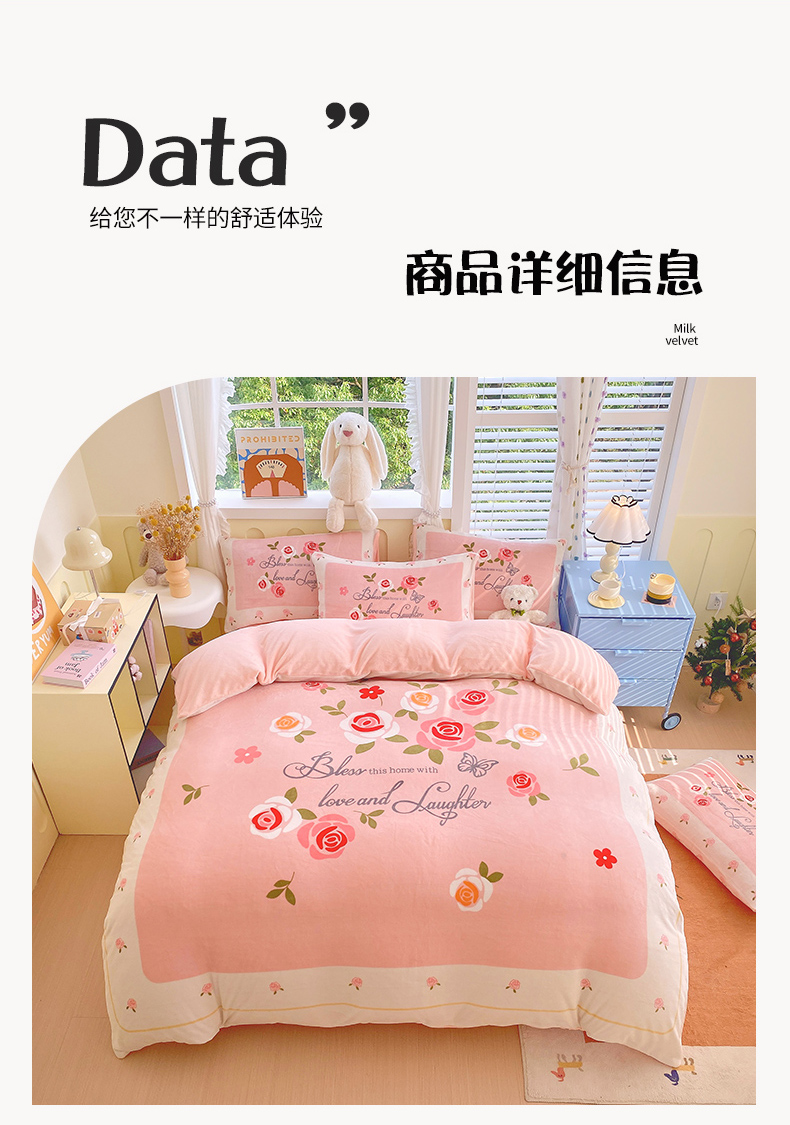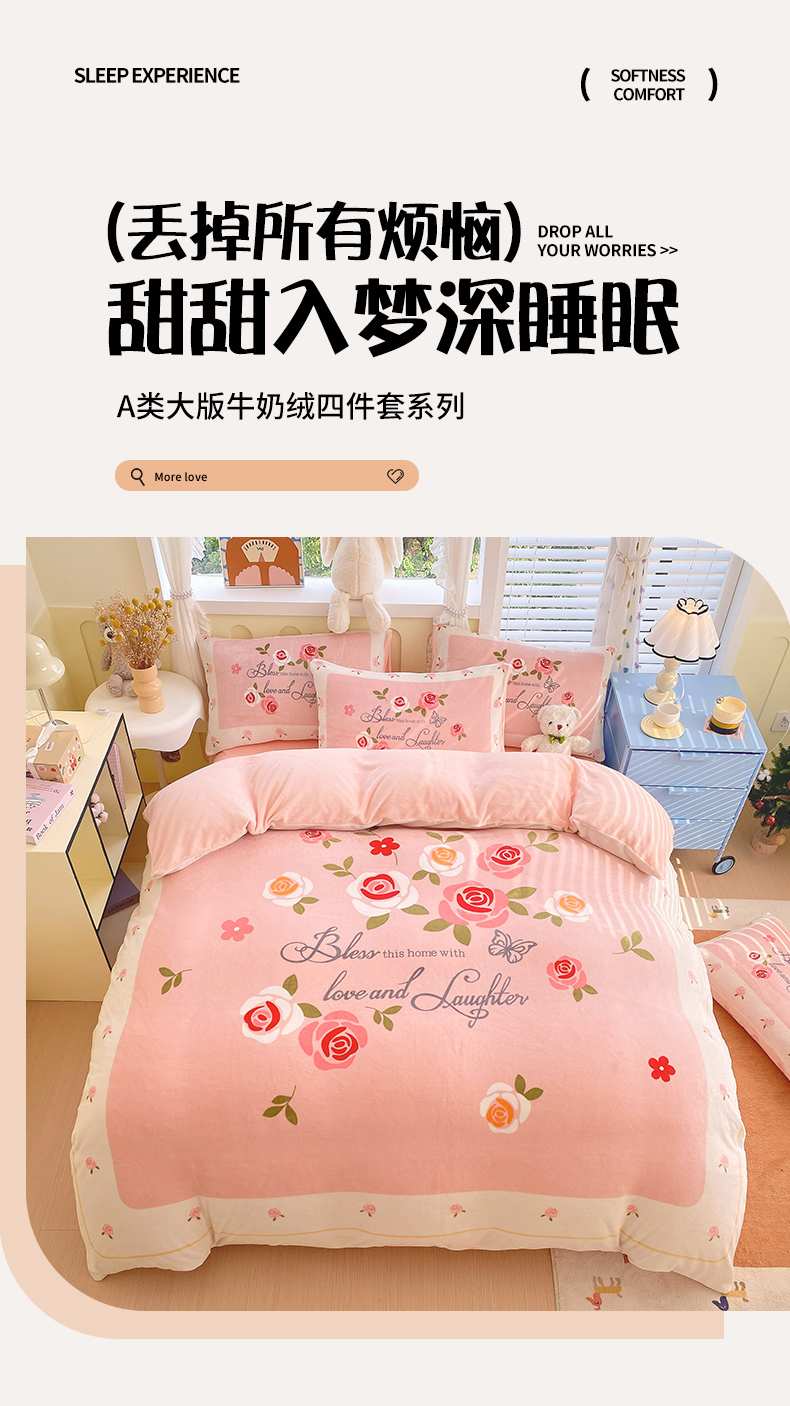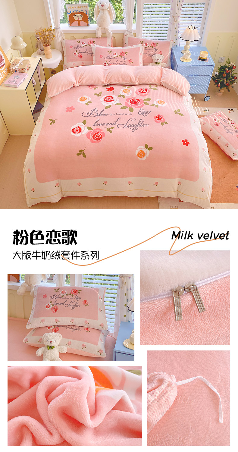 商品名称:莱米家纺 2024新款大版牛奶绒卡通四件套 粉色恋歌