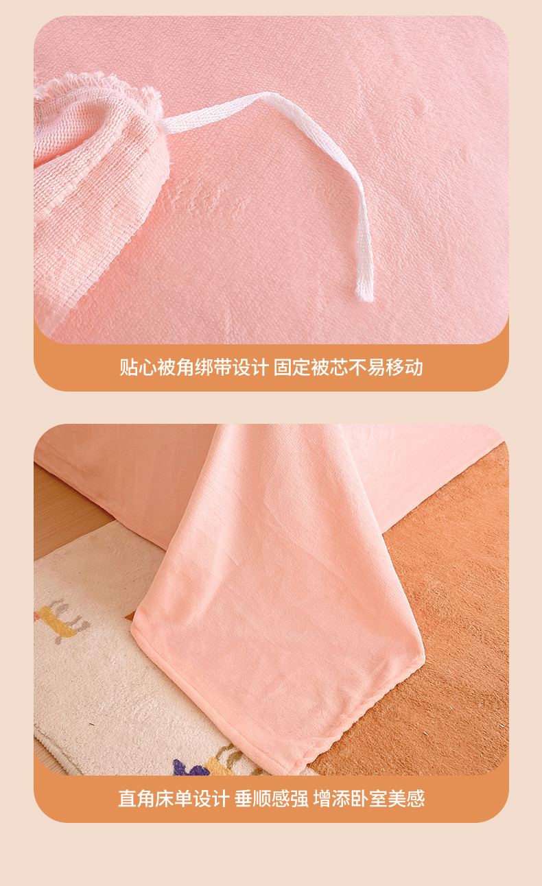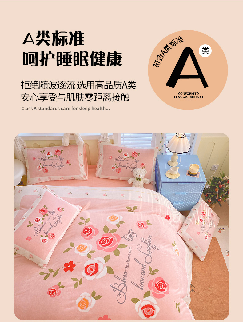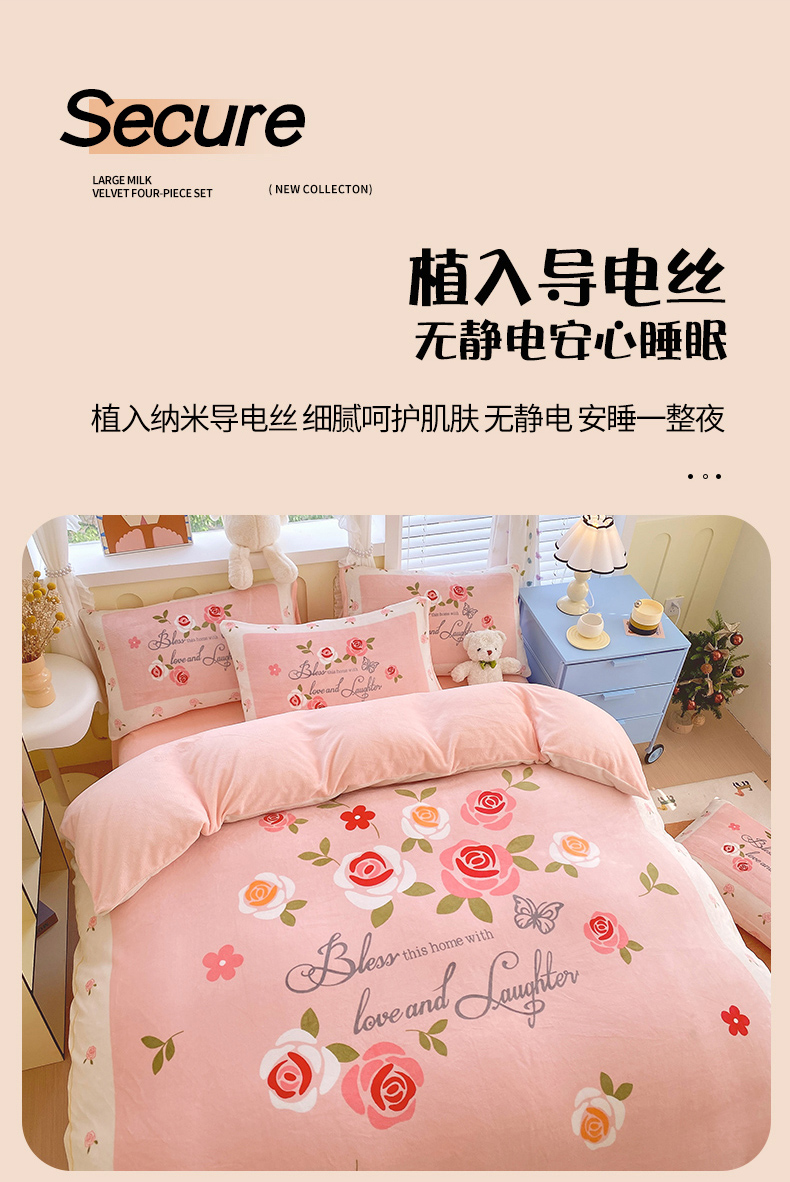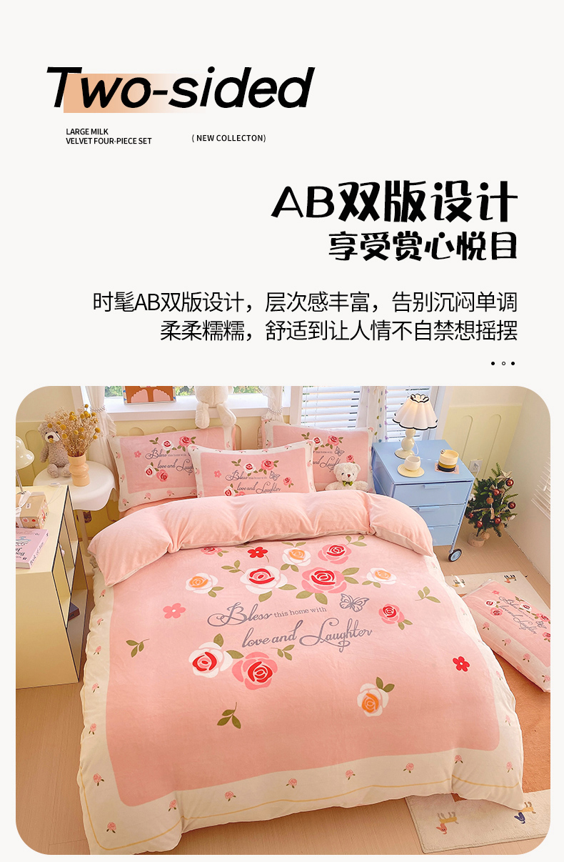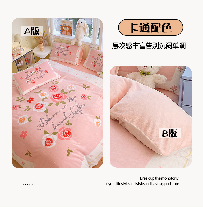 商品名称:莱米家纺 2024新款大版牛奶绒卡通四件套 粉色恋歌