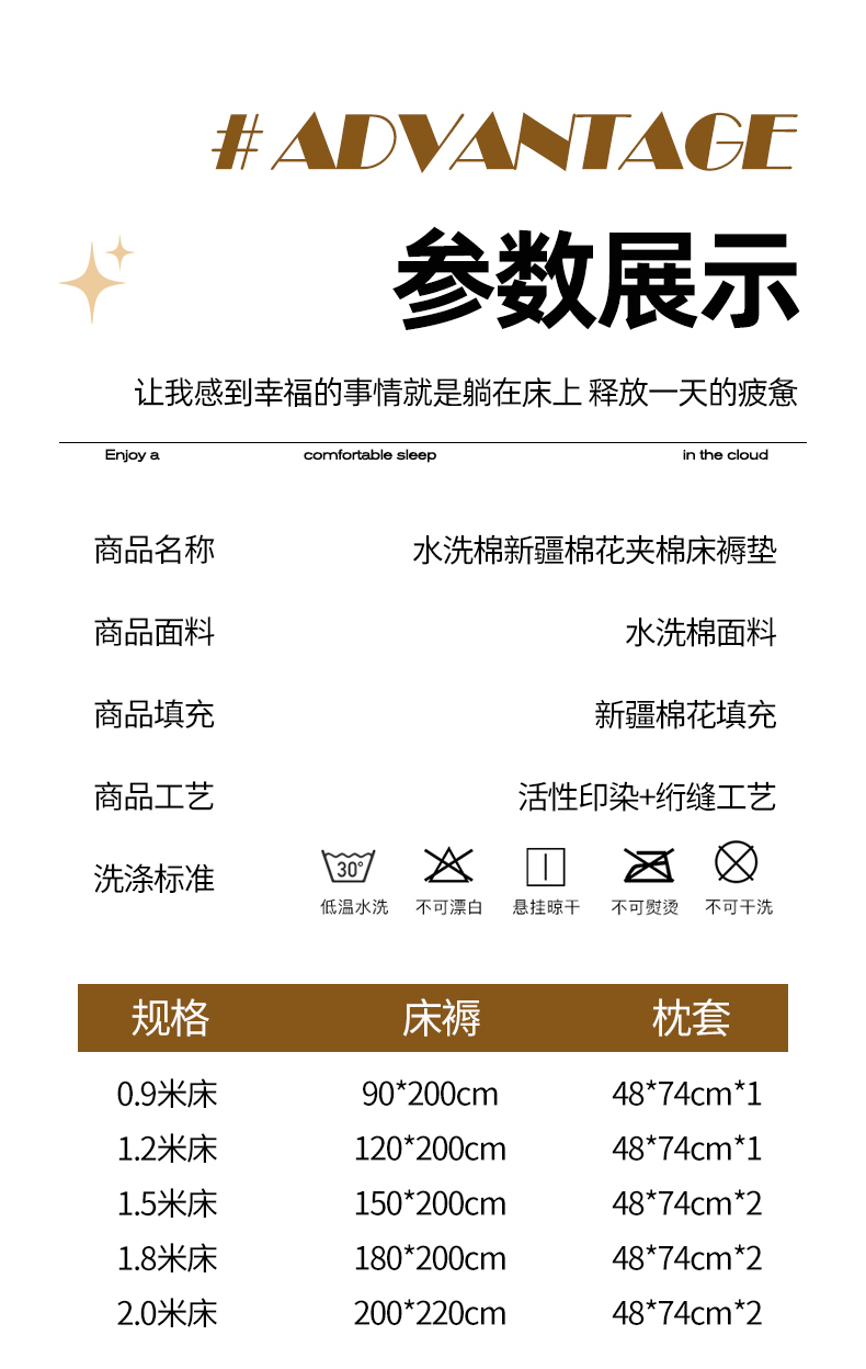 商品名称:(总)卡派 2024新款水洗棉100%新疆棉花床褥款单人床
