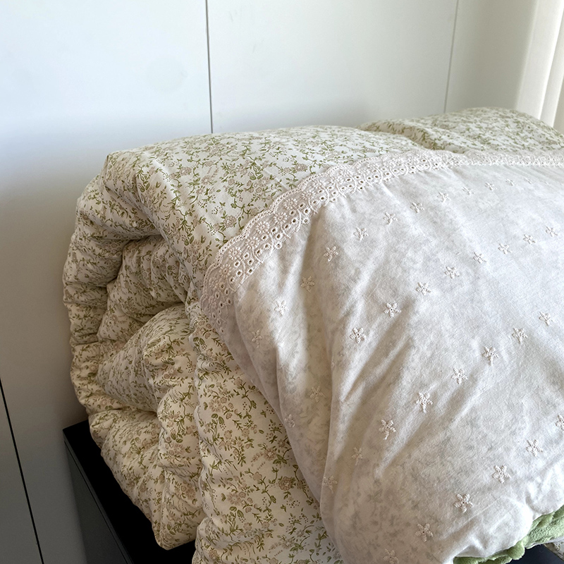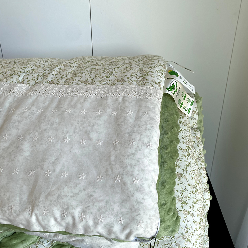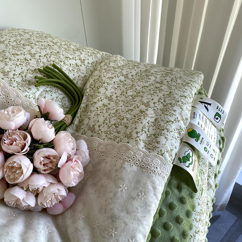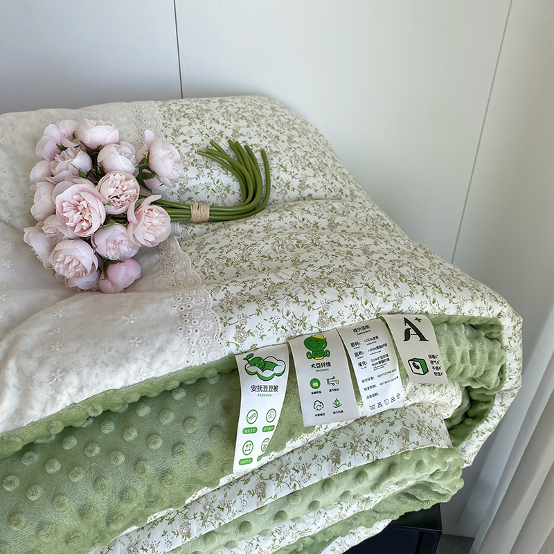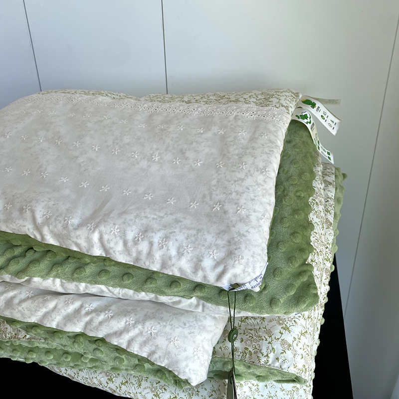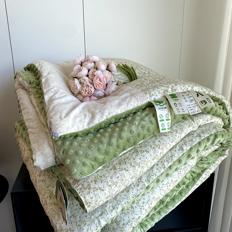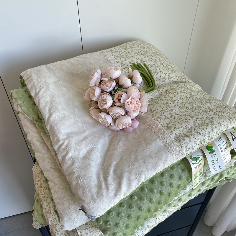 商品名称:2025新款秋冬季棉加豆豆绒法式花边款豆豆被被芯 花田绿