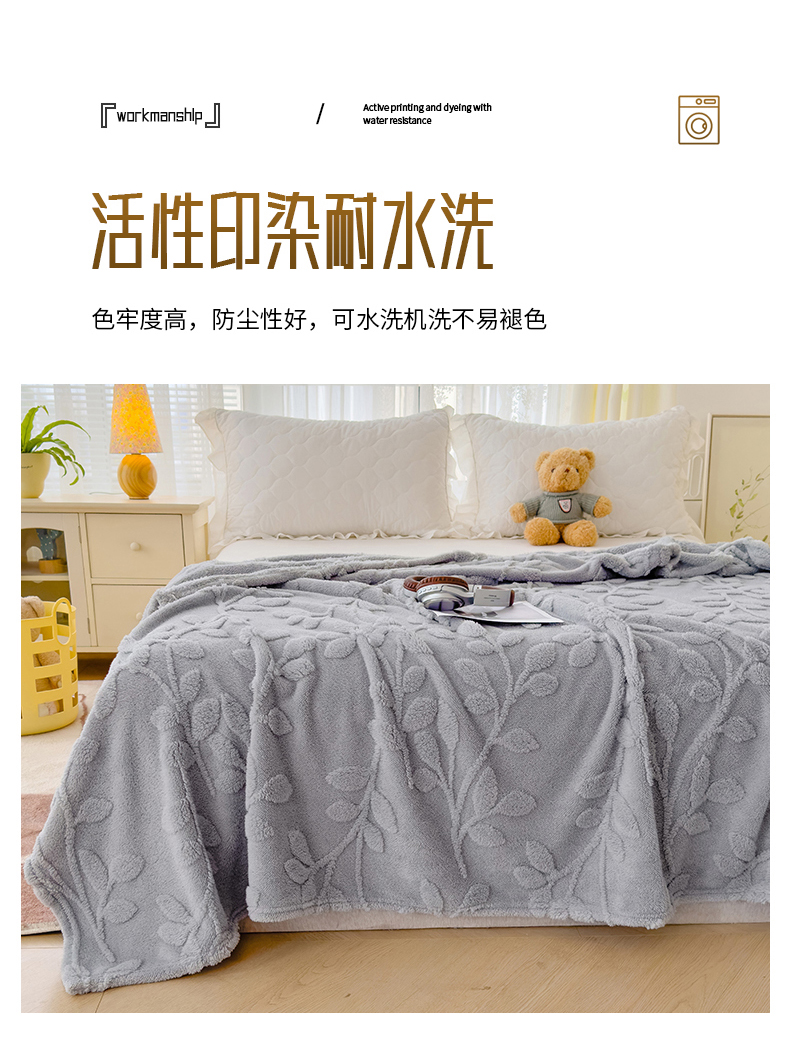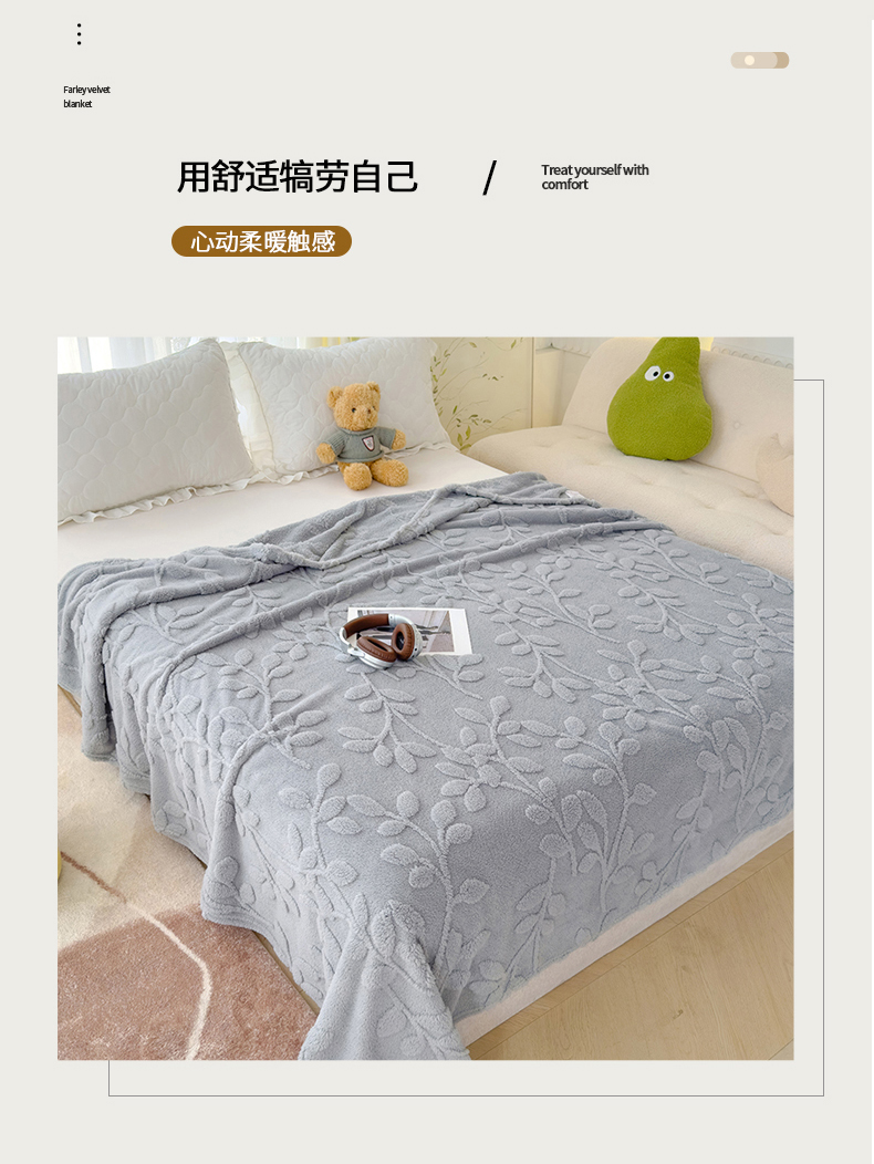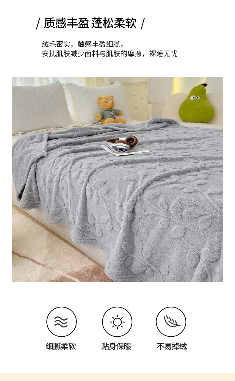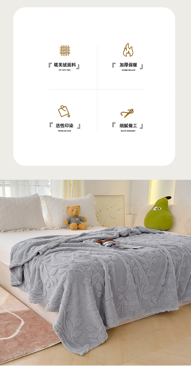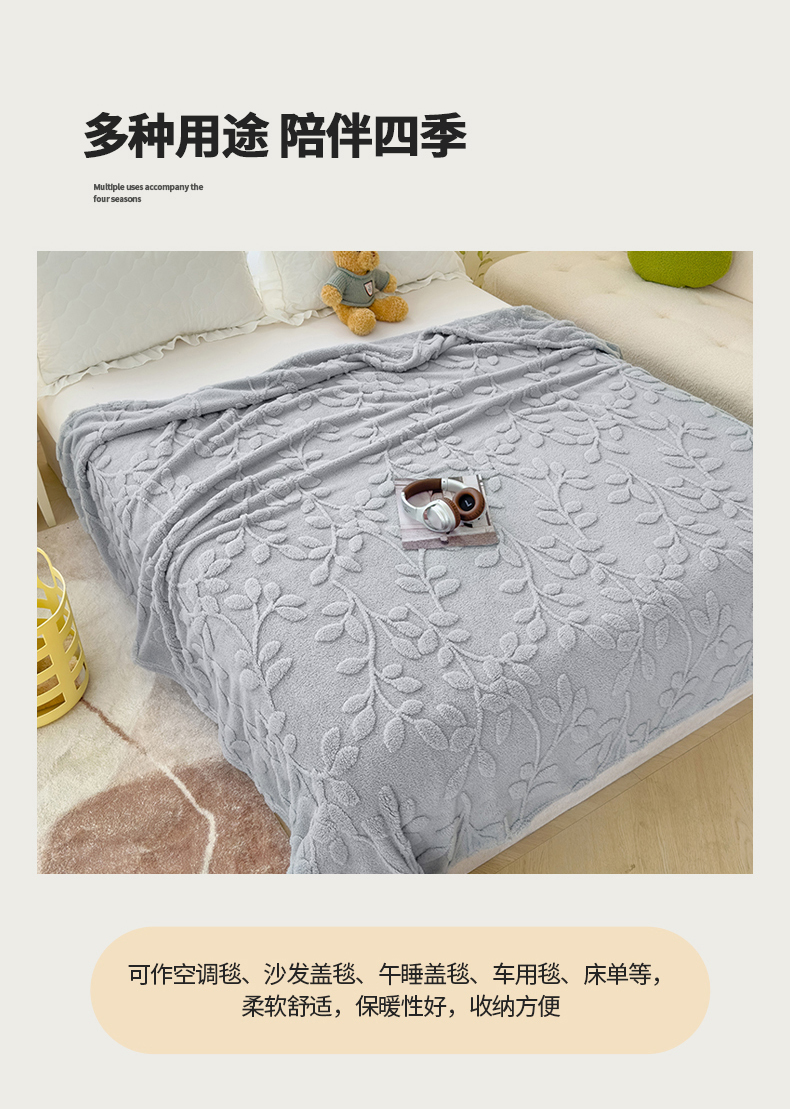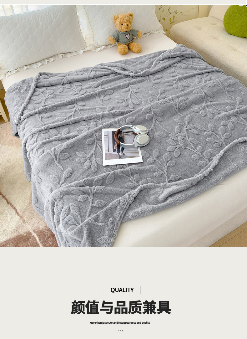 商品名称:(总)枋梢家纺 2024新款跨境电商发财树塔芙绒纯色发财树提花多功能盖毯午睡毯子办公毛毯
