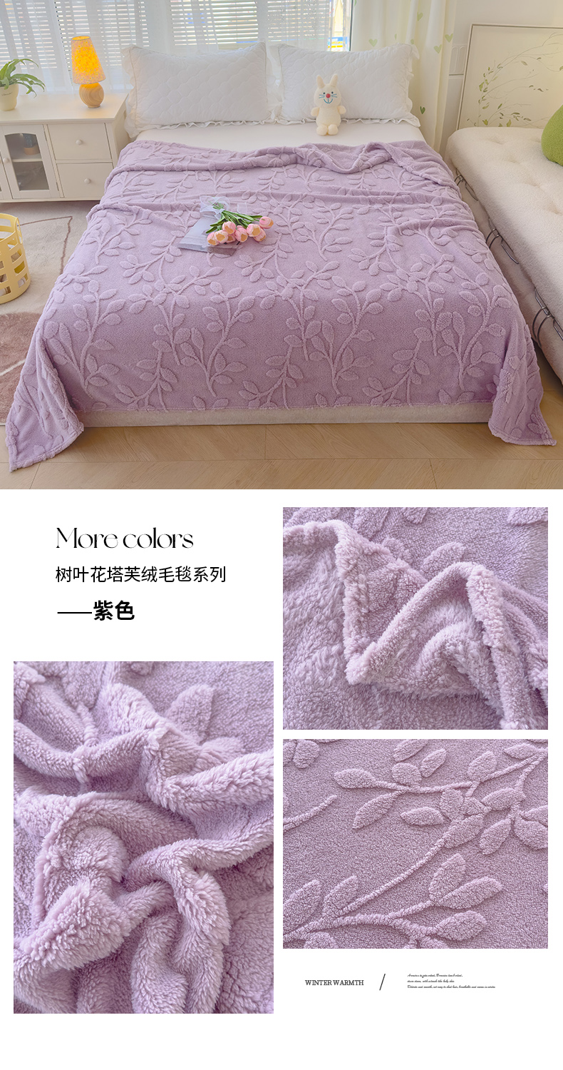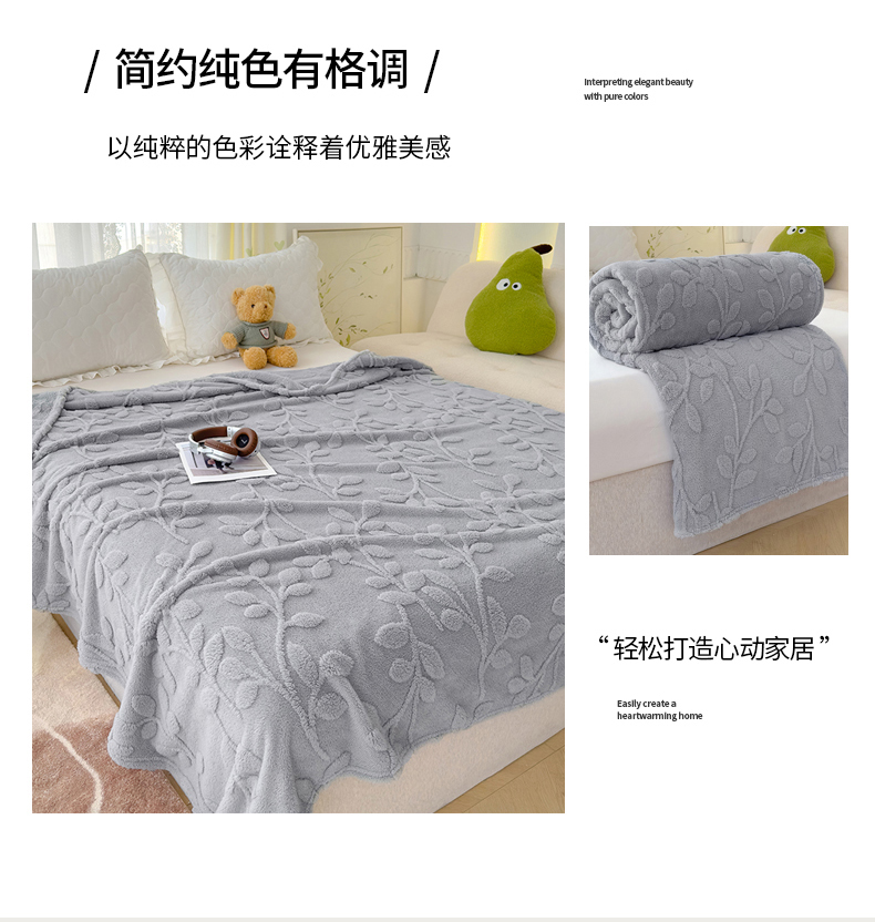 (总)枋梢家纺 2024新款跨境电商发财树塔芙绒纯色发财树提花多功能盖毯午睡毯子办公毛毯 ,灰色,咖色,蓝色,米白,米咖,紫色