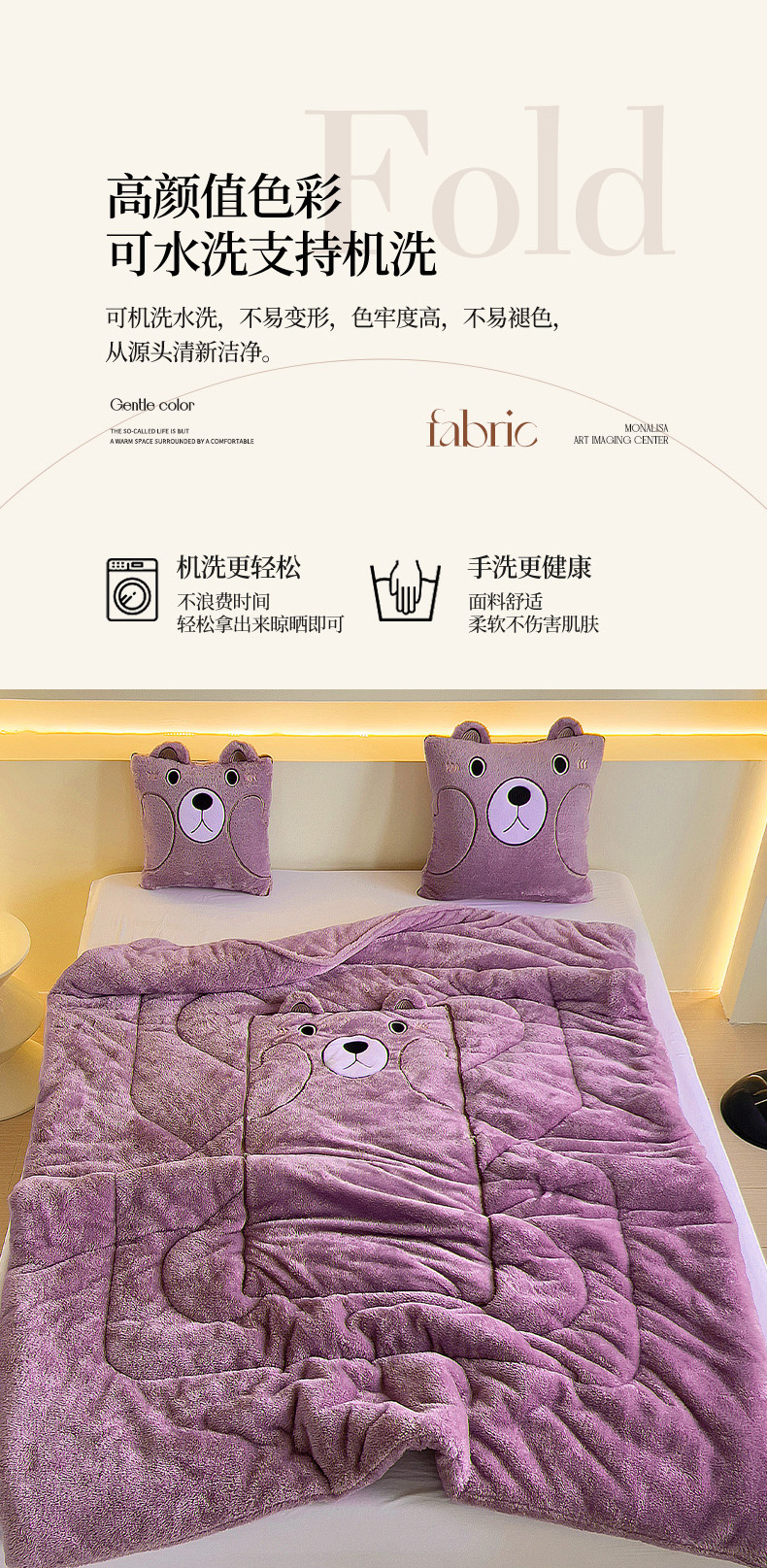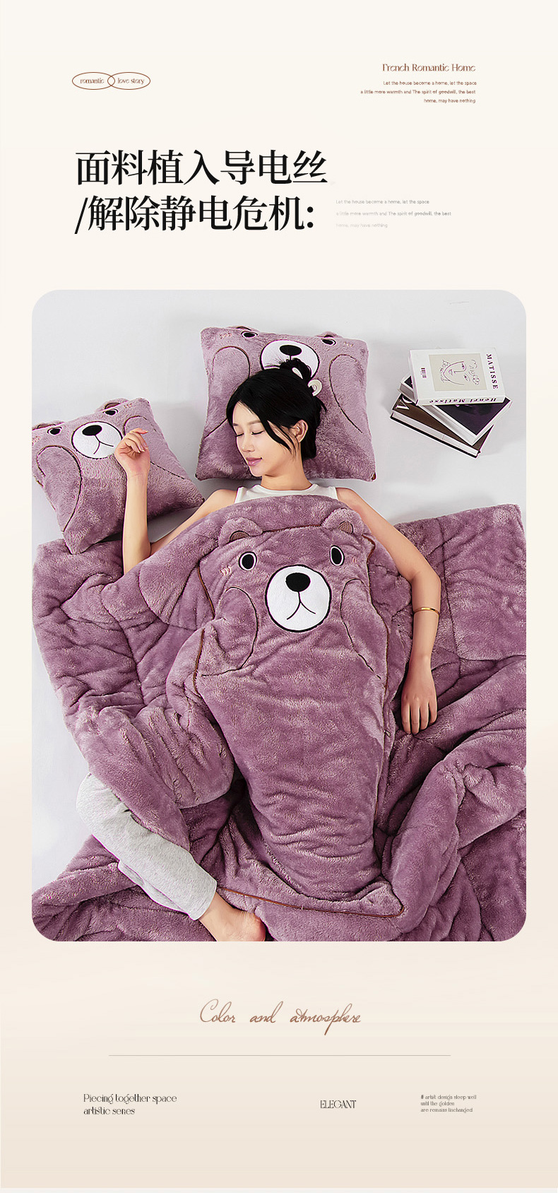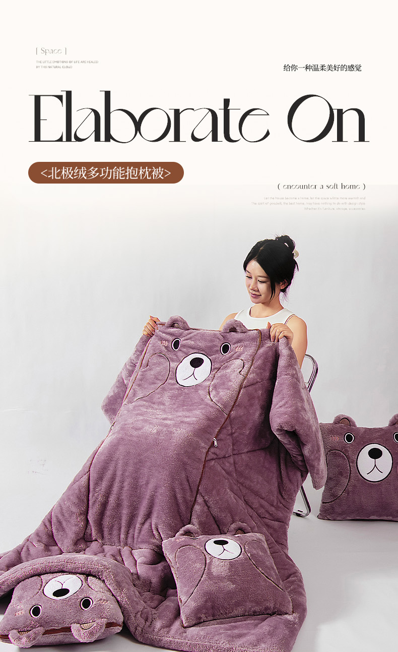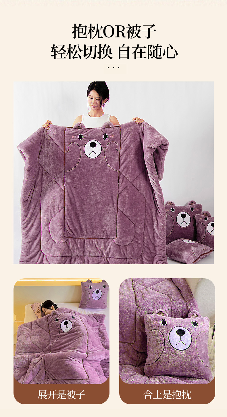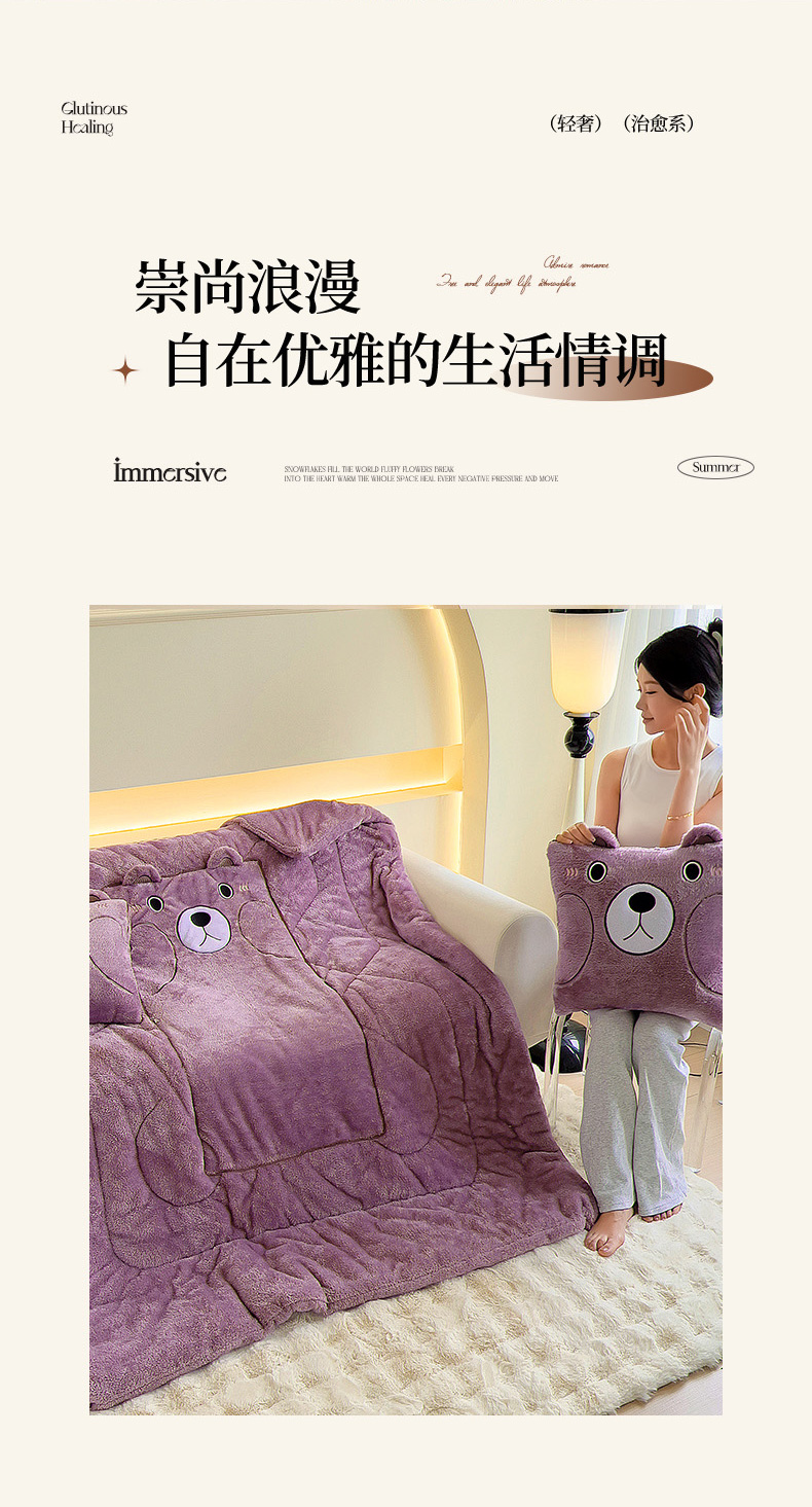 商品名称:阳光依佰抱枕被 2024秋冬新款北极绒乖乖熊多功能抱枕被 乖乖熊-木槿紫