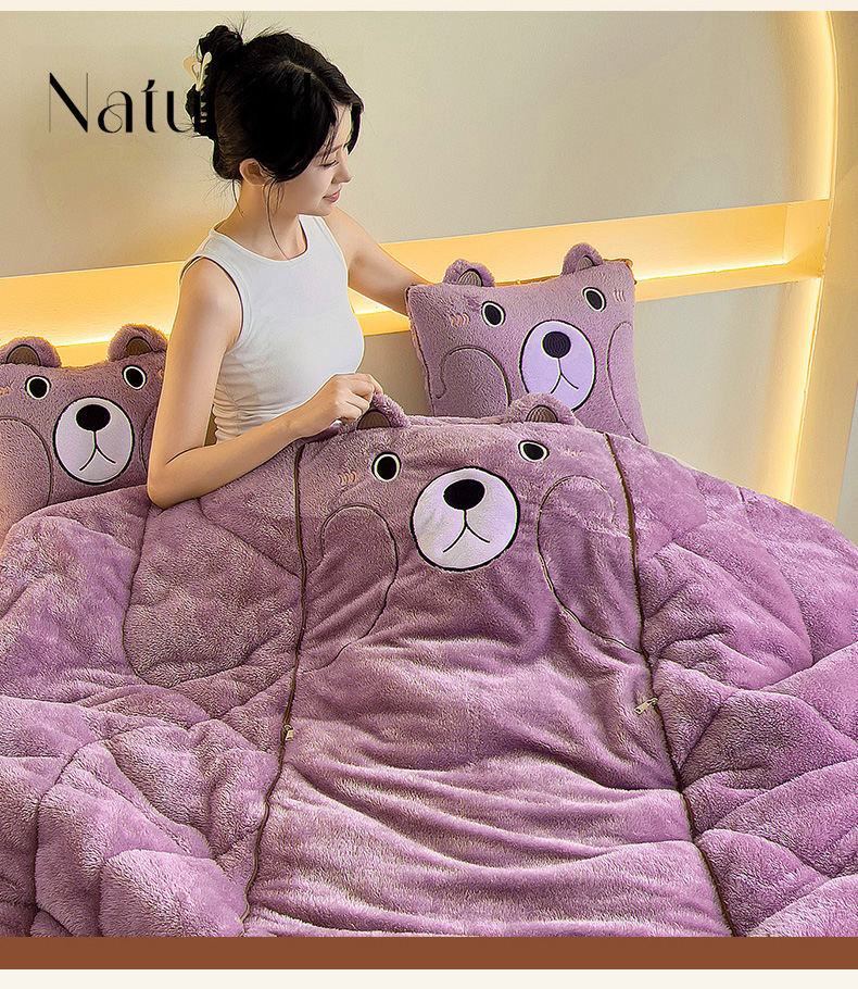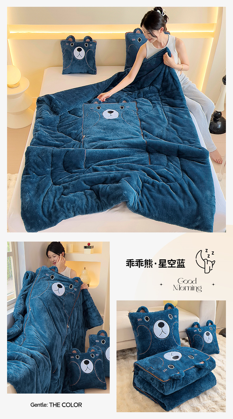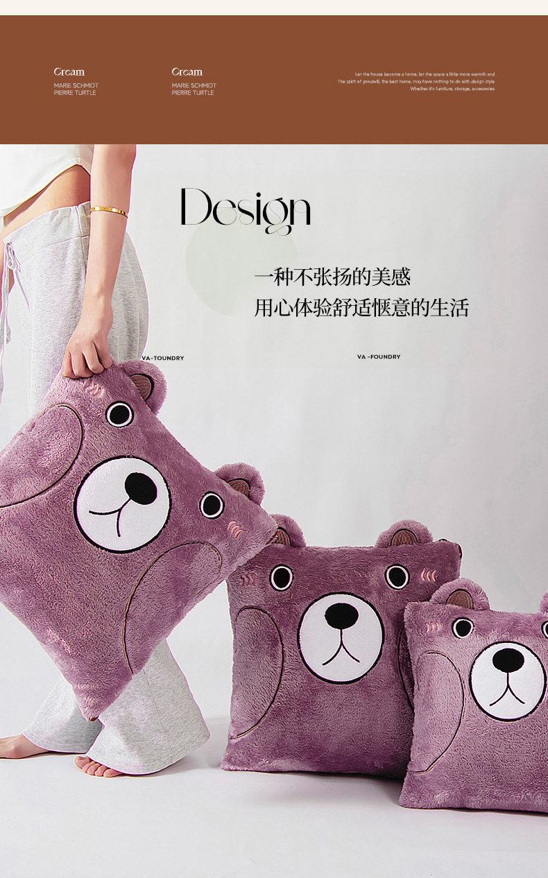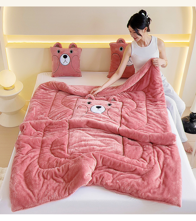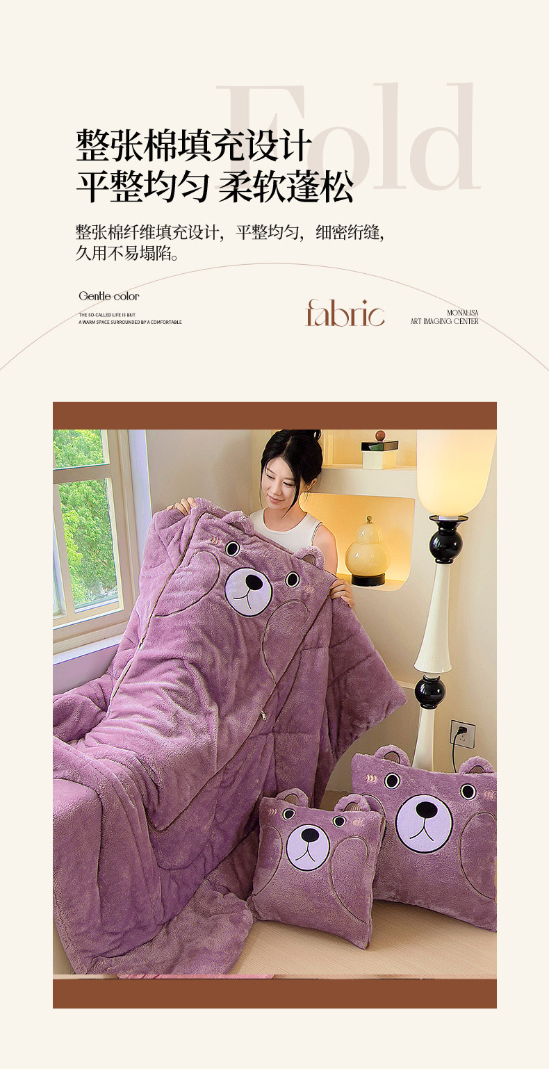商品名称:阳光依佰抱枕被 2024秋冬新款北极绒乖乖熊多功能抱枕被 乖乖熊-木槿紫