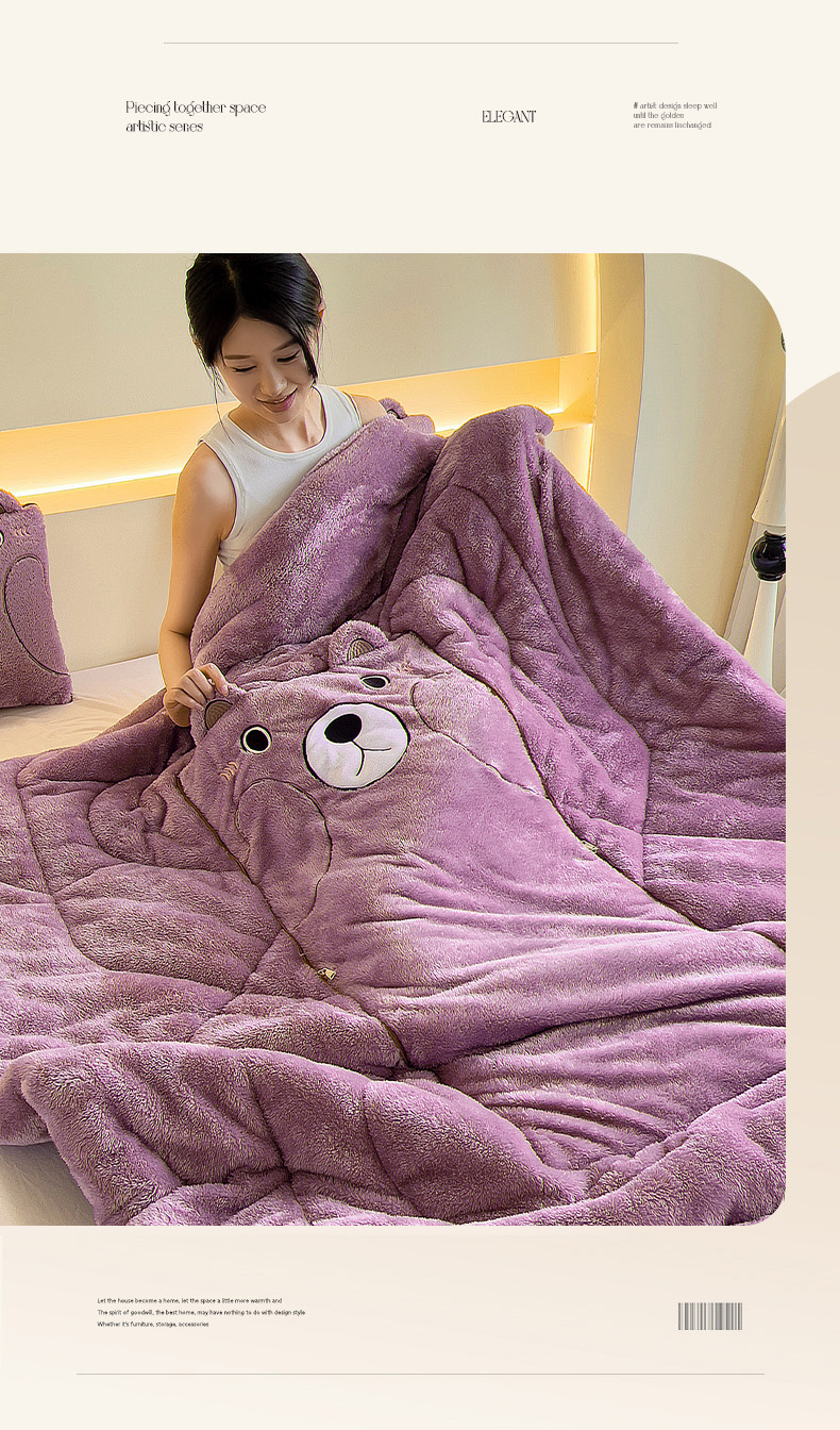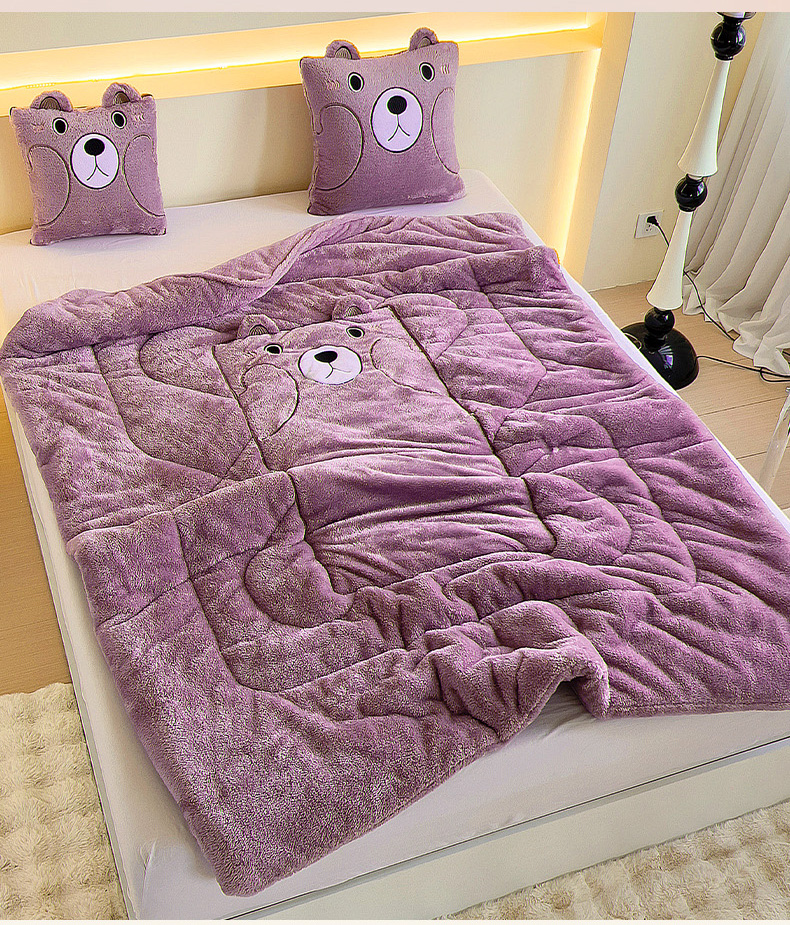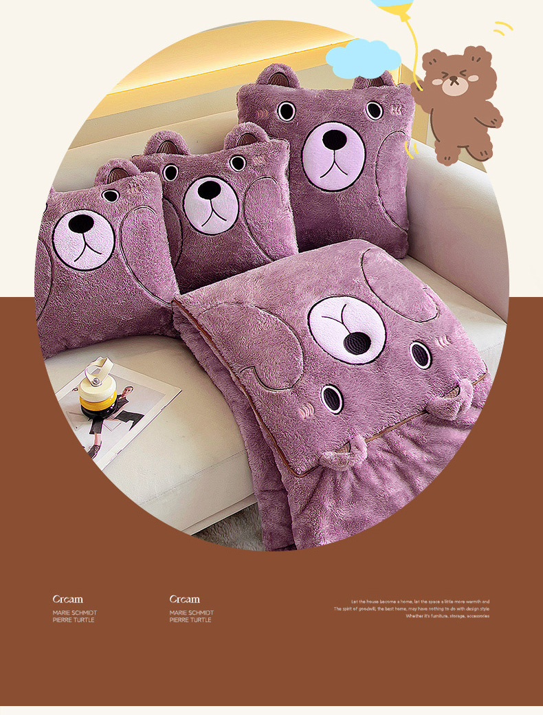 阳光依佰抱枕被 2024秋冬新款北极绒乖乖熊多功能抱枕被 乖乖熊-木槿紫