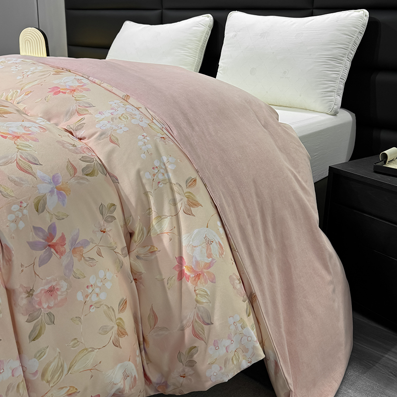 2024新款A类全棉磨毛数码印花系列单被套 科莫花园粉