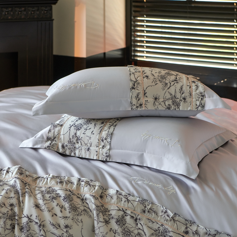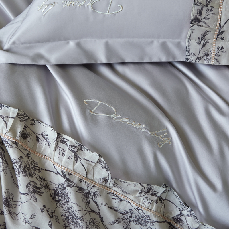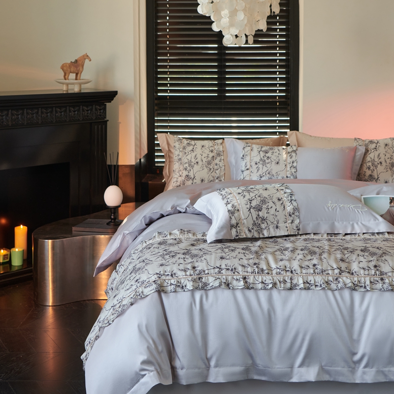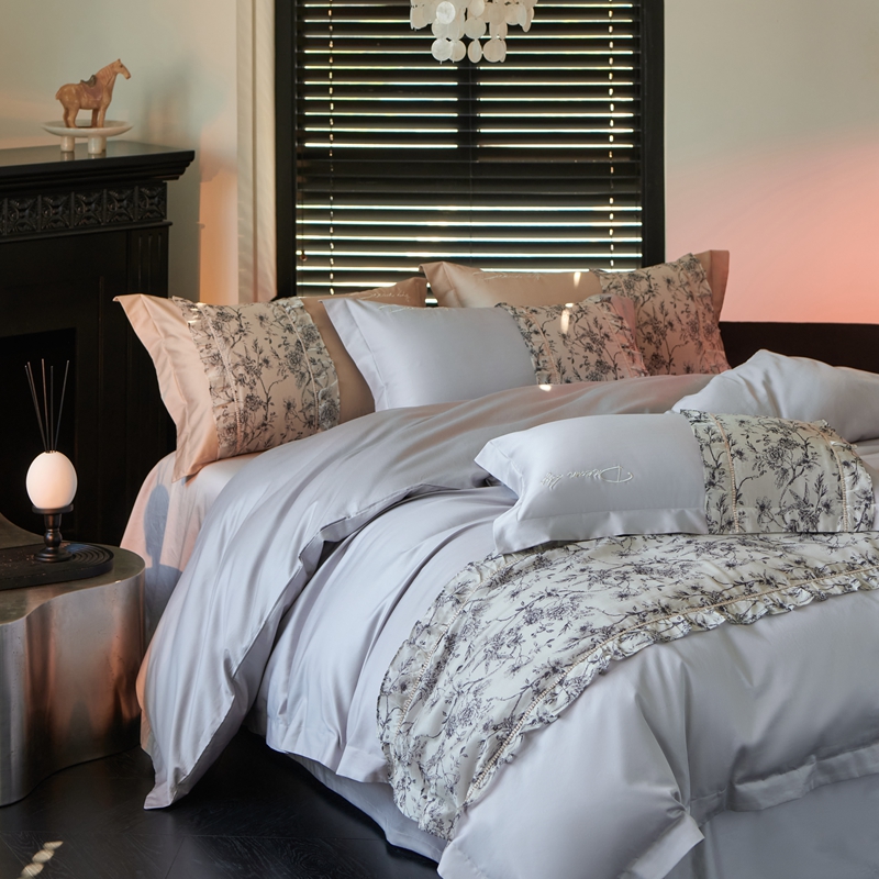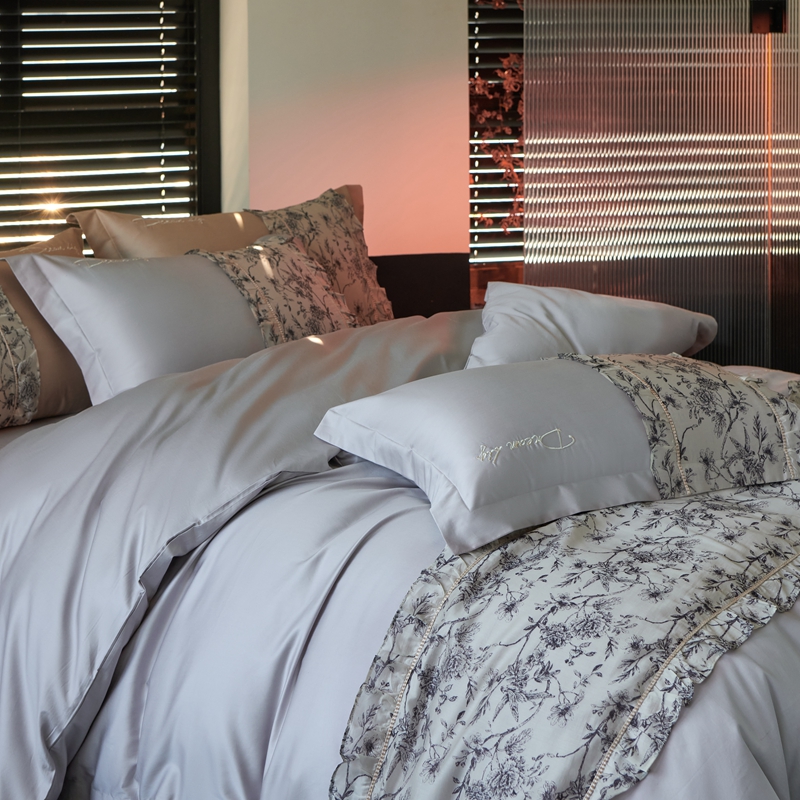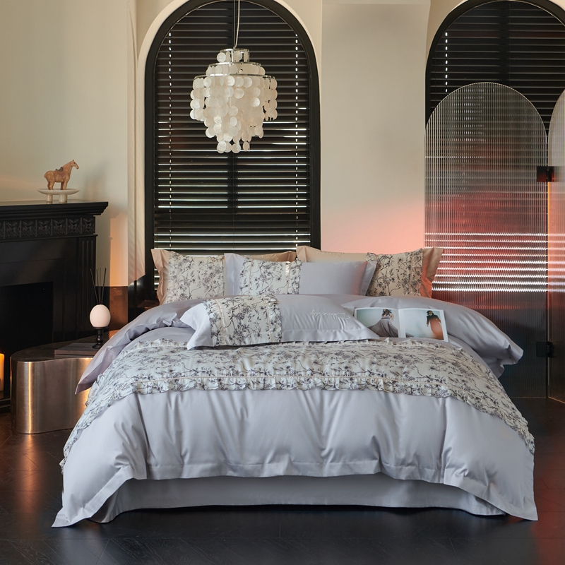 商品名称:时亿家居 2024新款100支长绒棉雅馨系列四件套 雅馨蓝灰
