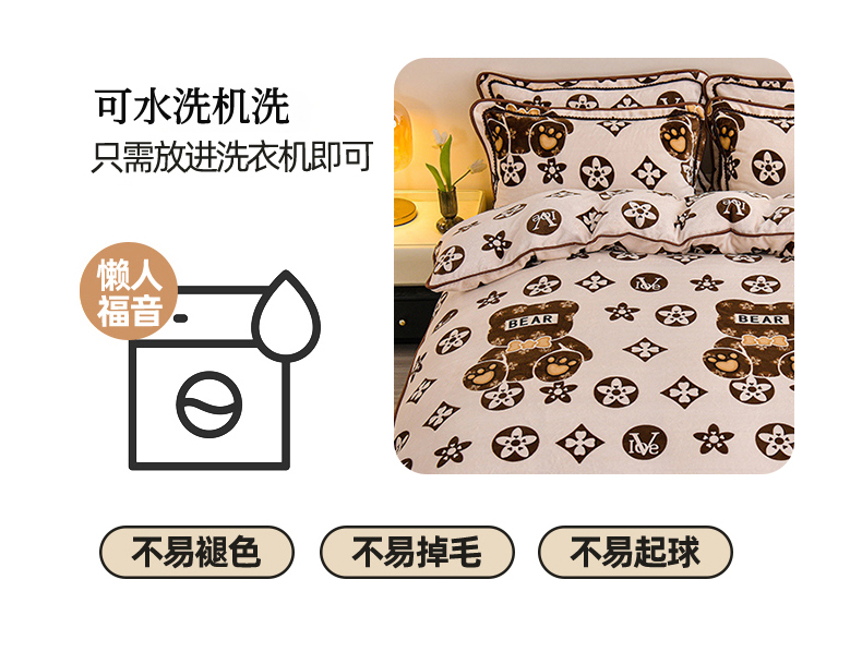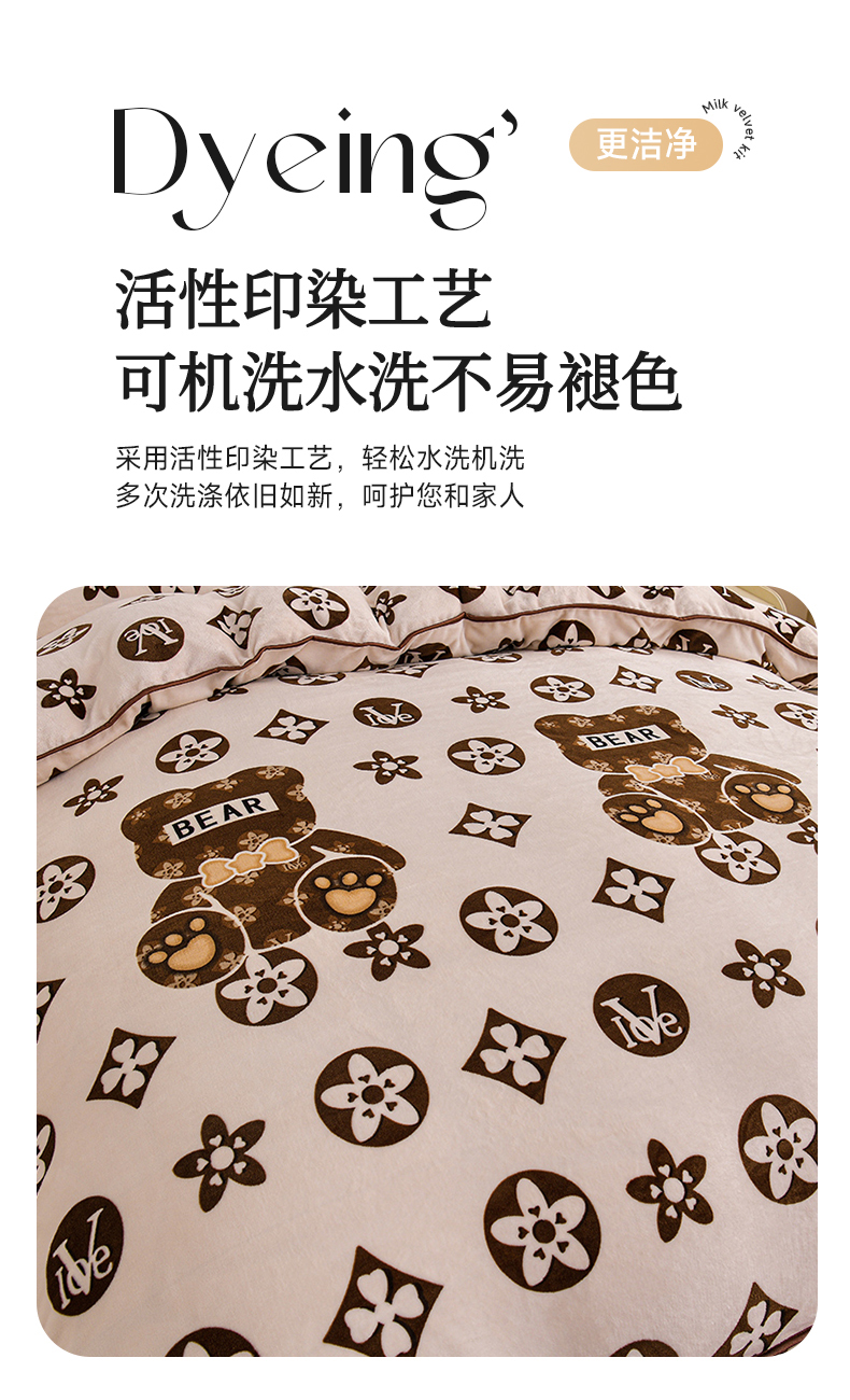 商品名称:赫本家纺 2025新品8-9斤爆品牛奶绒四件套床裙款金雕绒法莱绒四套件 轻奢小熊