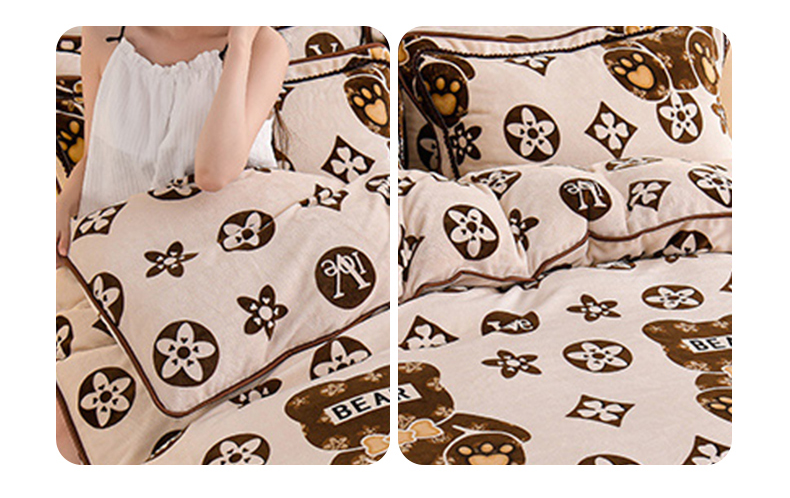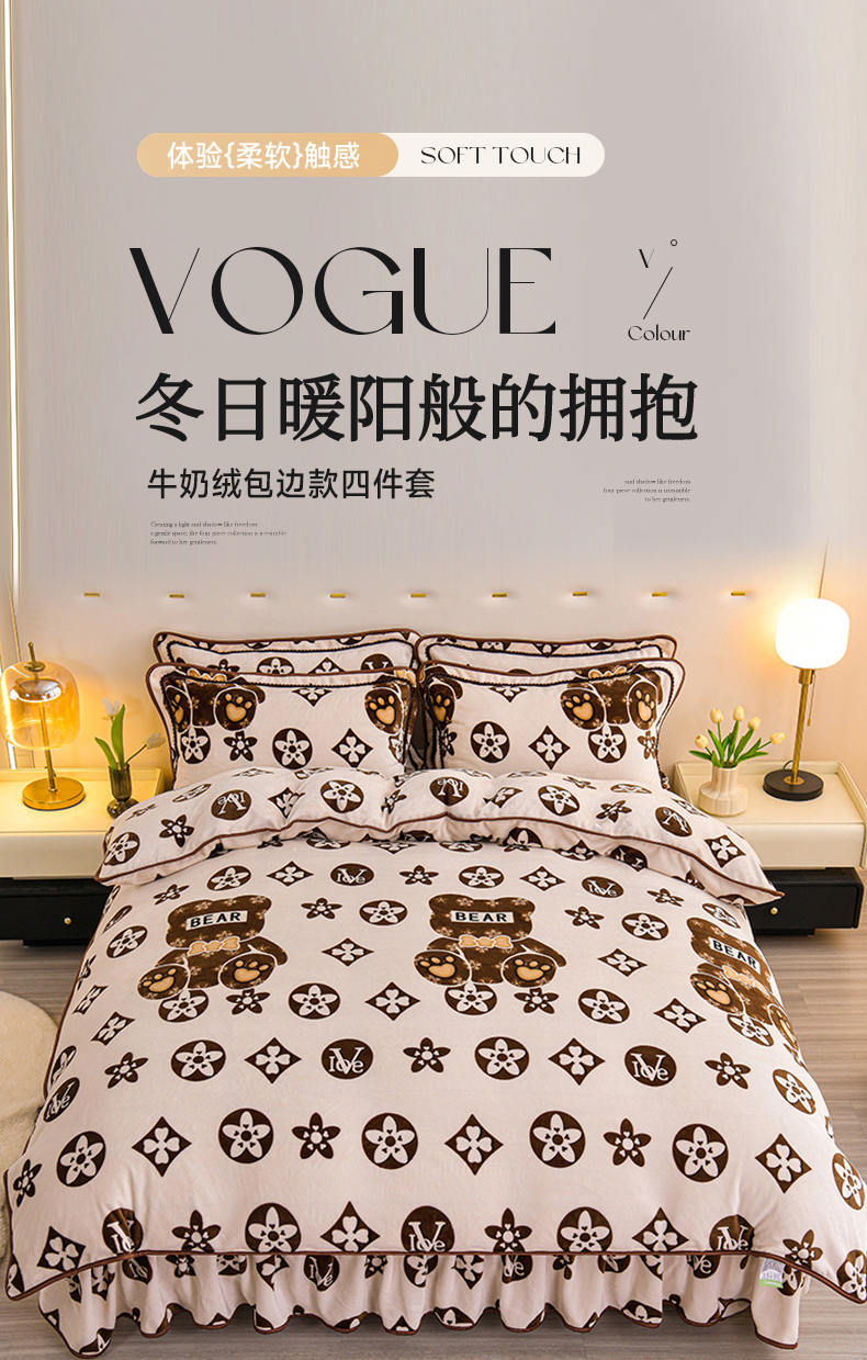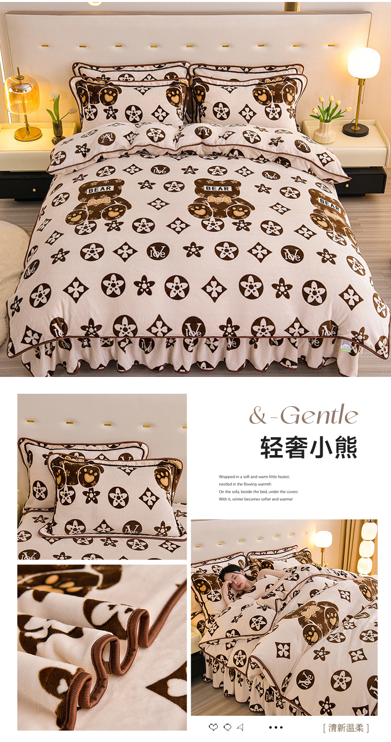 赫本家纺 2025新品8-9斤爆品牛奶绒四件套床裙款金雕绒法莱绒四套件 轻奢小熊