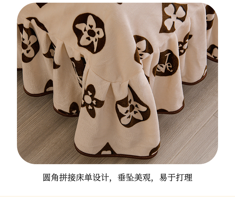 赫本 2025新品8斤爆品牛奶绒四件套床裙款金雕绒法莱绒四套件 蝶语-咖,蝶语-咖