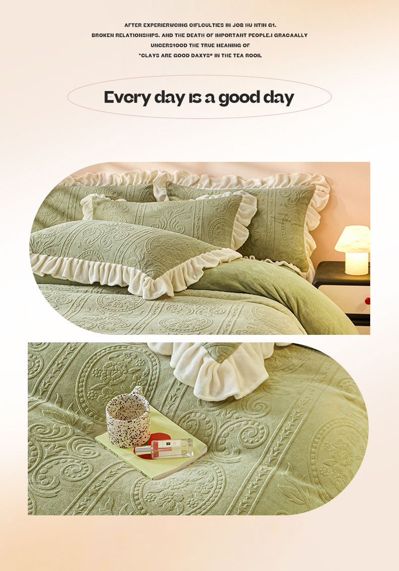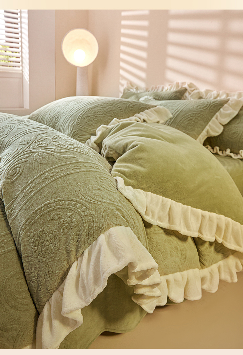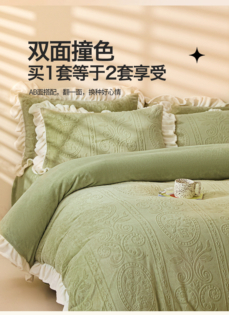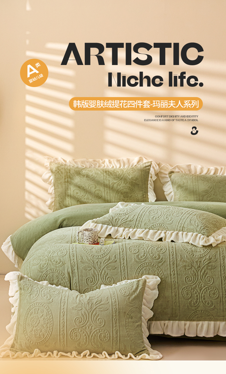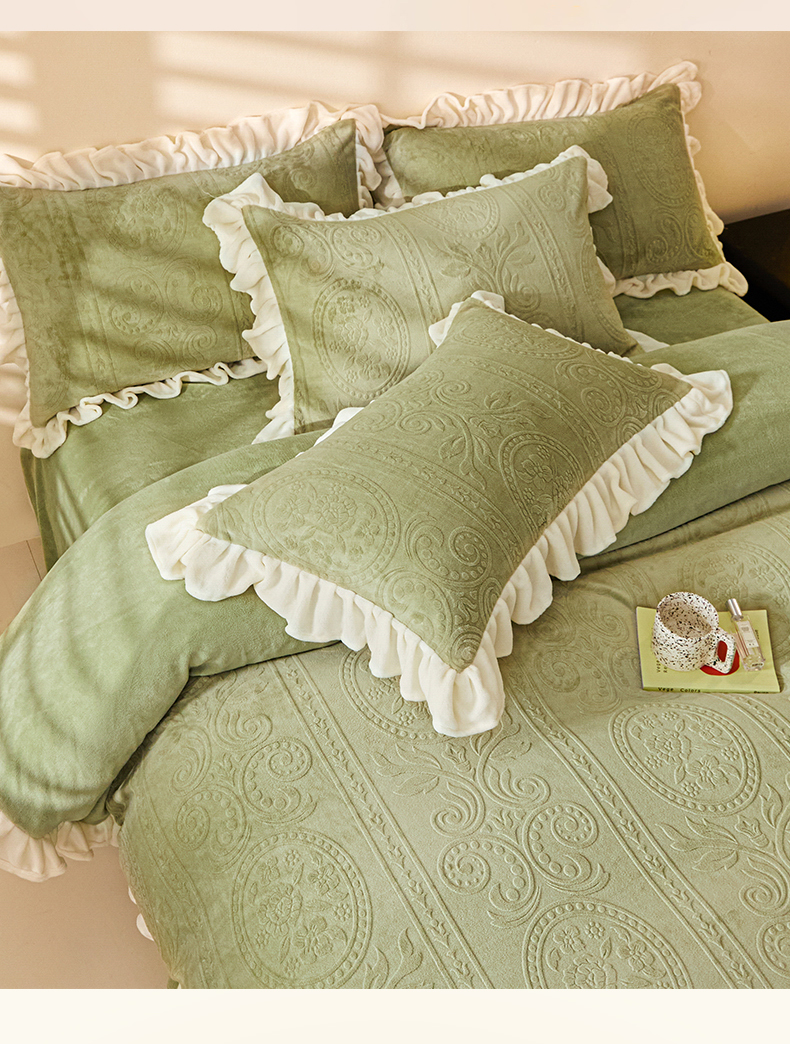 2024新保暖-秋冬A类韩版婴肤绒提花四件套-玛丽夫人系列 玛丽夫人-橄榄绿