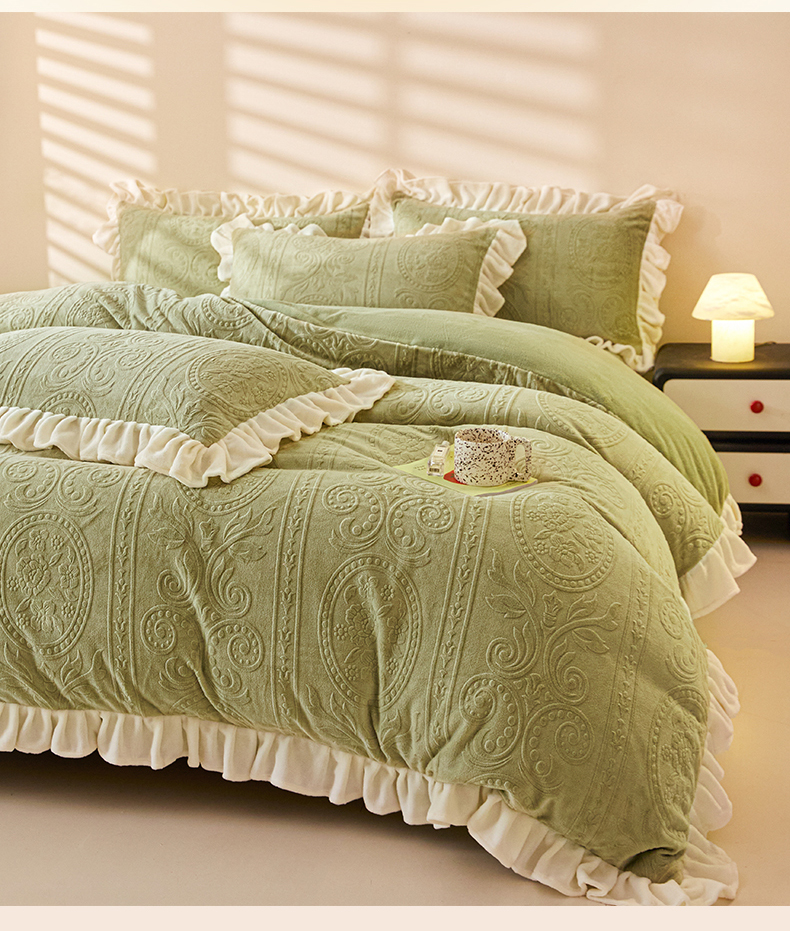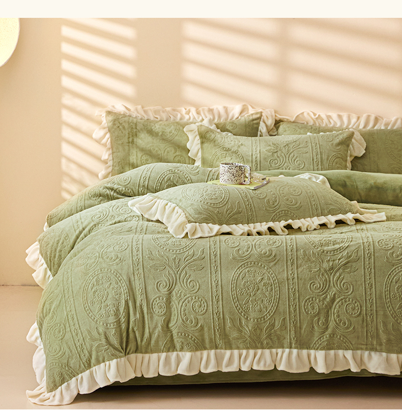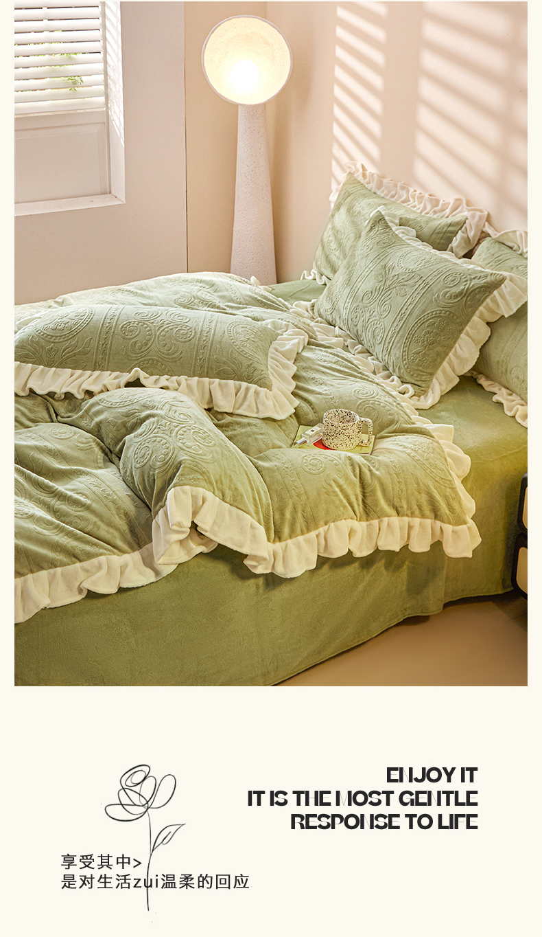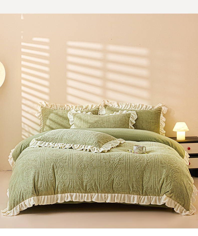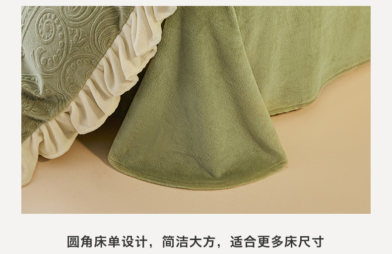 商品名称:2024新保暖-秋冬A类韩版婴肤绒提花四件套-玛丽夫人系列 玛丽夫人-橄榄绿