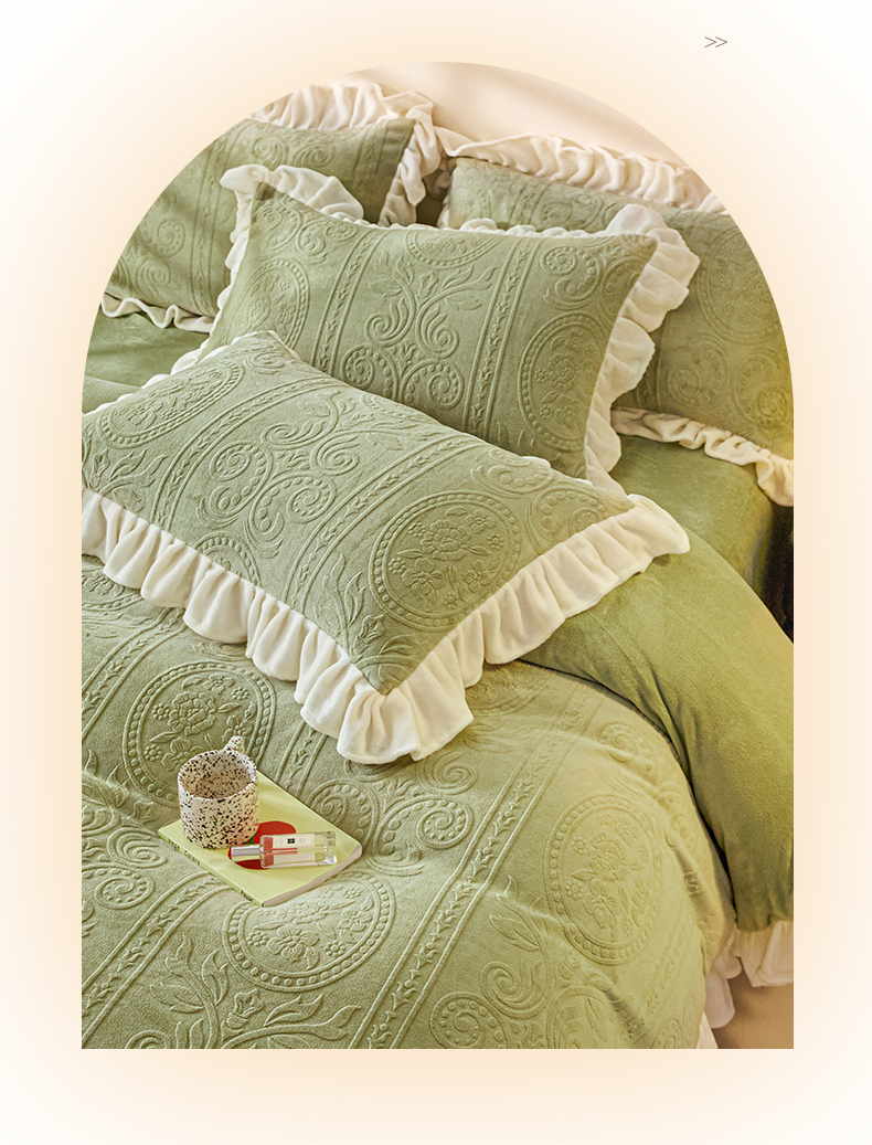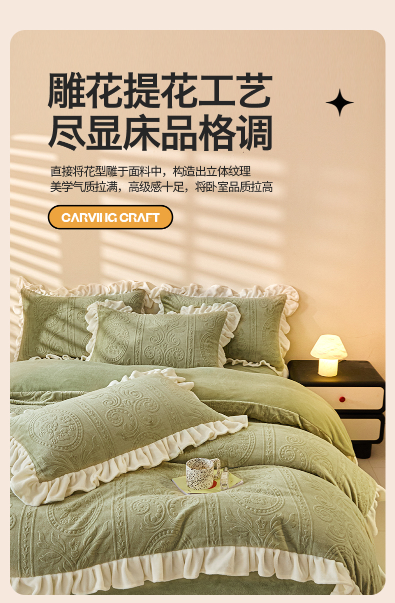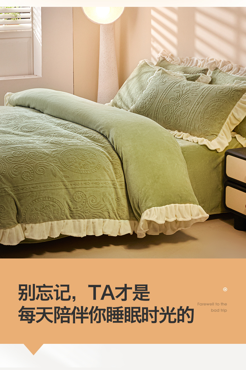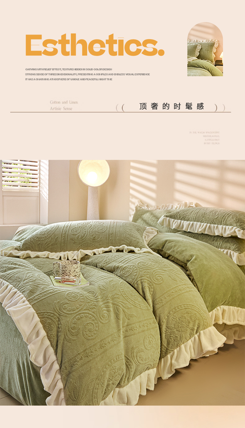 商品名称:2024新保暖-秋冬A类韩版婴肤绒提花四件套-玛丽夫人系列 玛丽夫人-橄榄绿