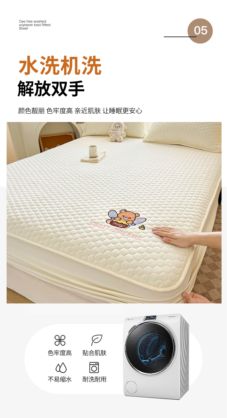 九亭家纺 2024新款A类水洗刺绣夹棉防水床笠床罩 防水无染-芥末绿