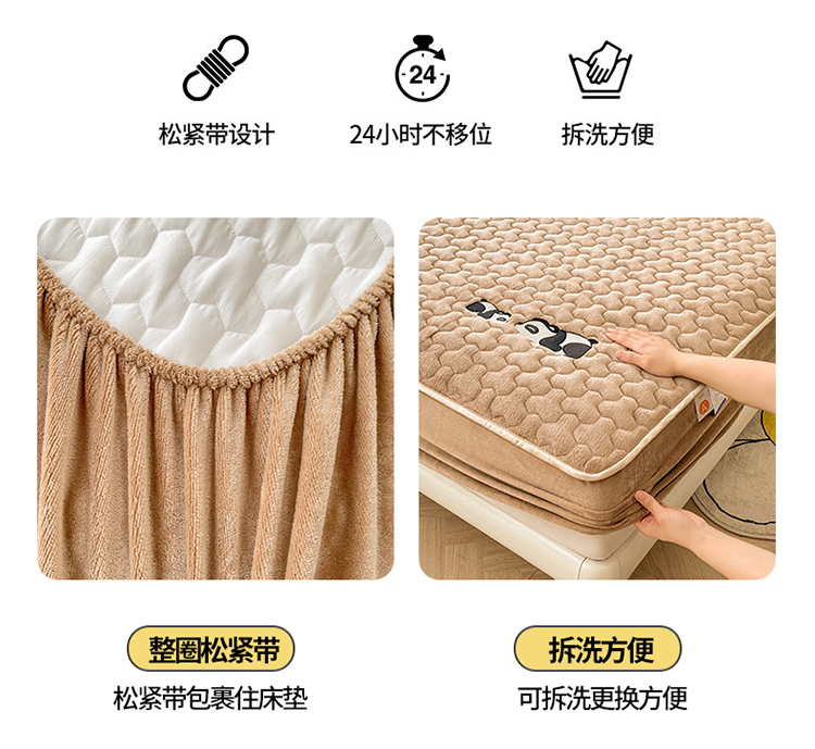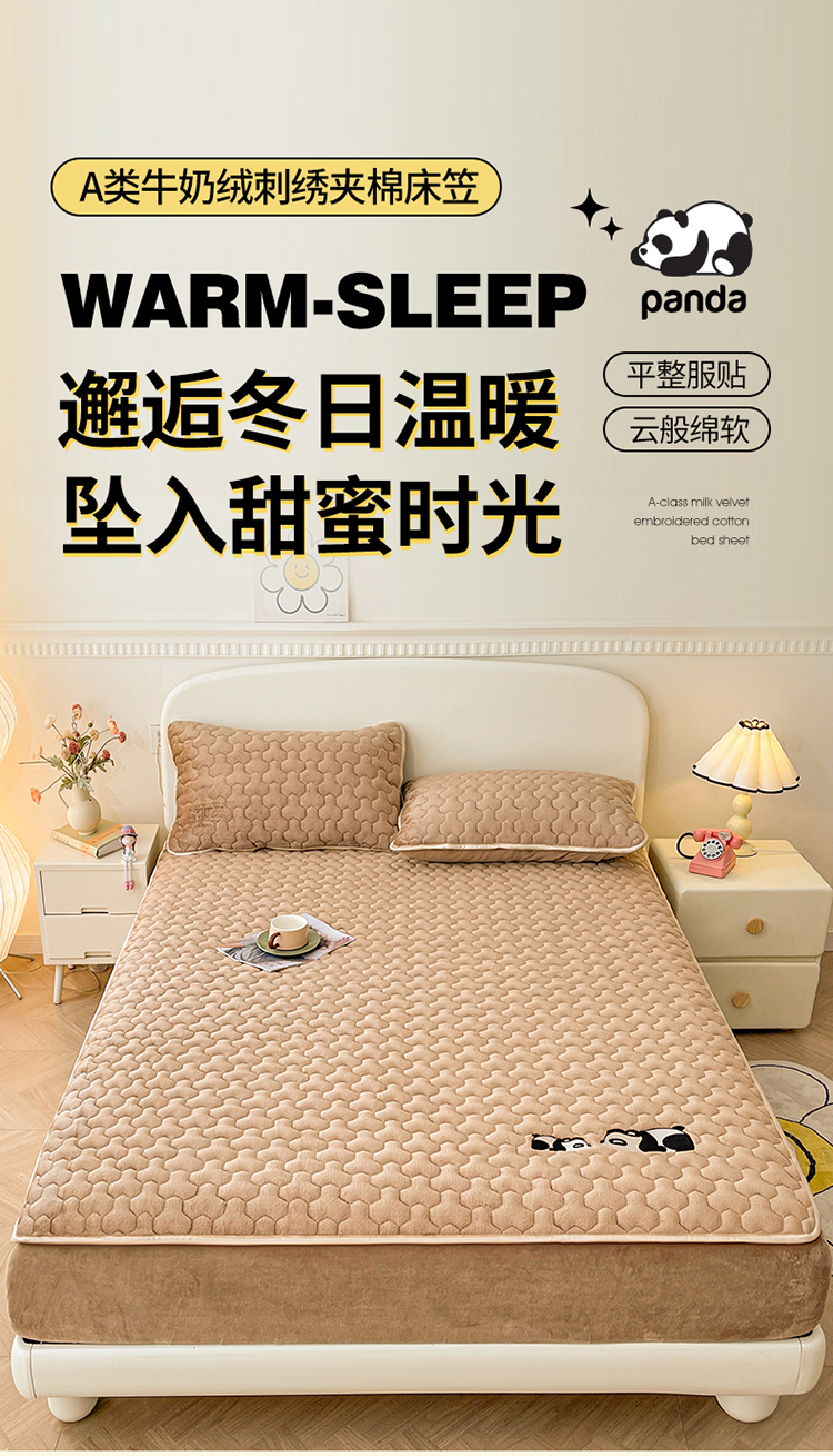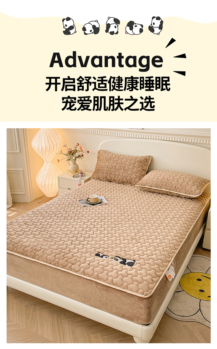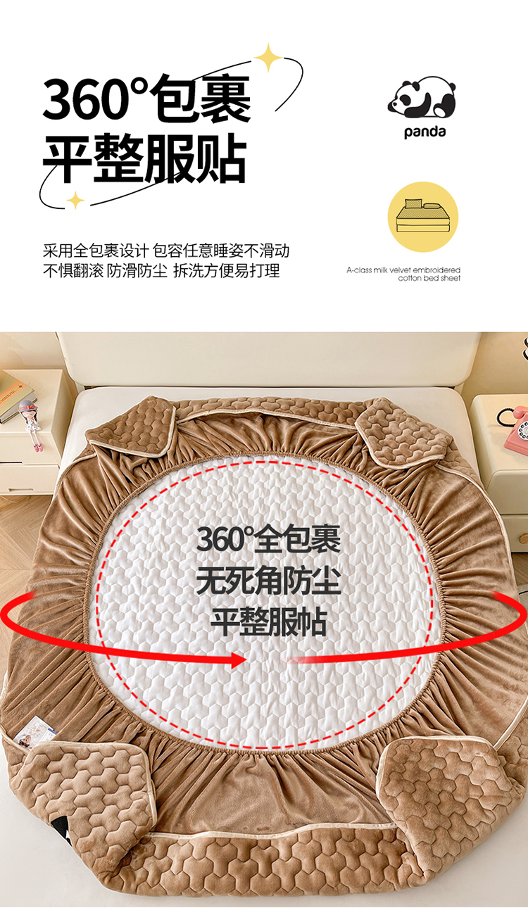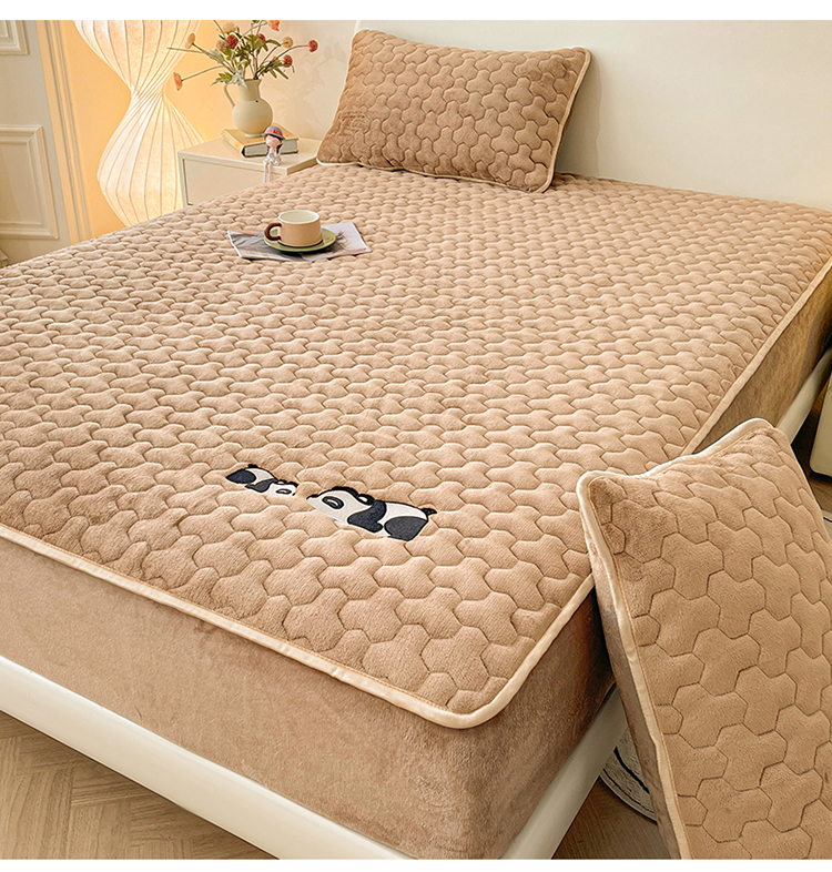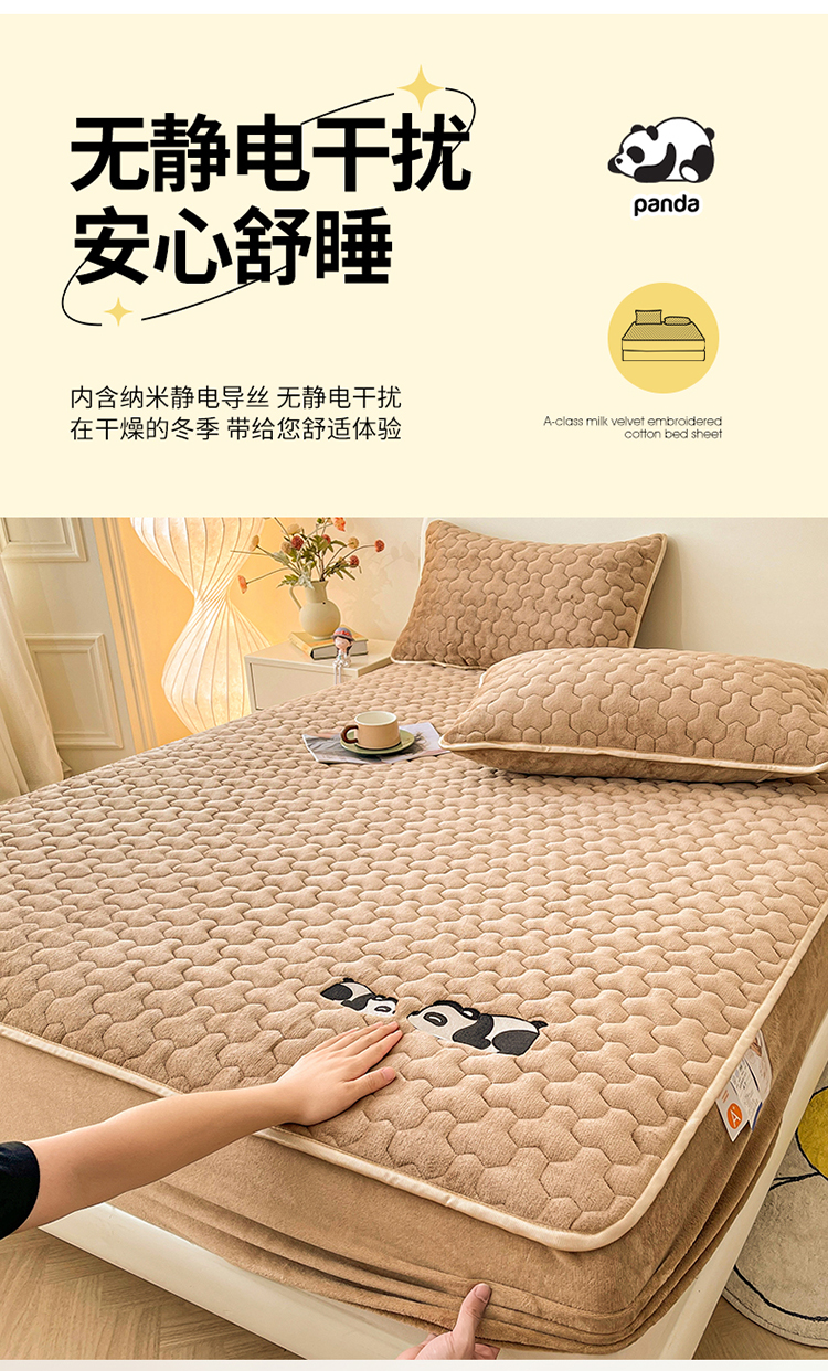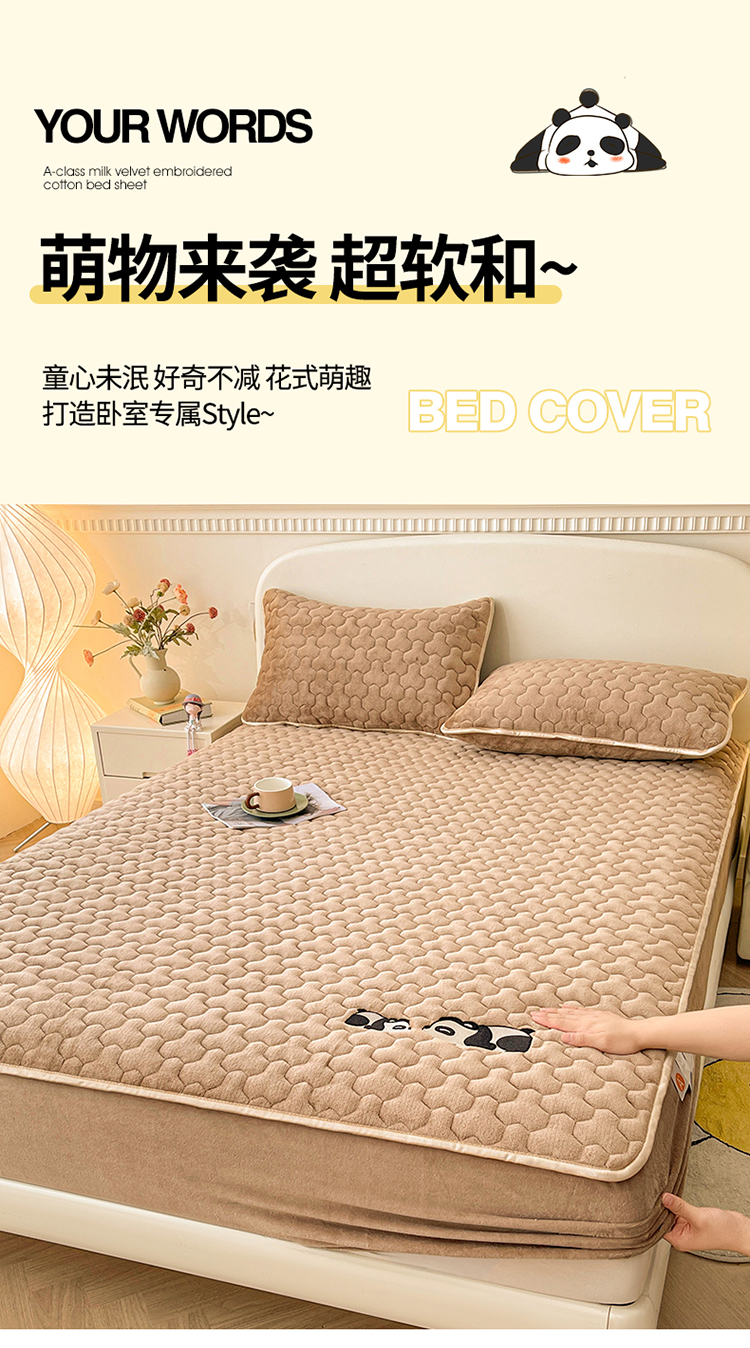 • 91家纺网 家纺一手货源 找家纺 2024新款A类牛奶绒刺绣夹棉床笠-小熊猫 小熊猫-幻影咖