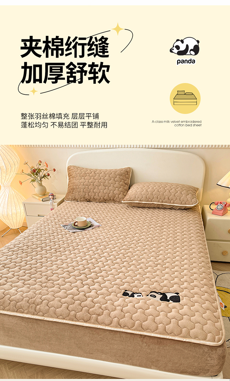 2024新款A类牛奶绒刺绣夹棉床笠-小熊猫 小熊猫-幻影咖