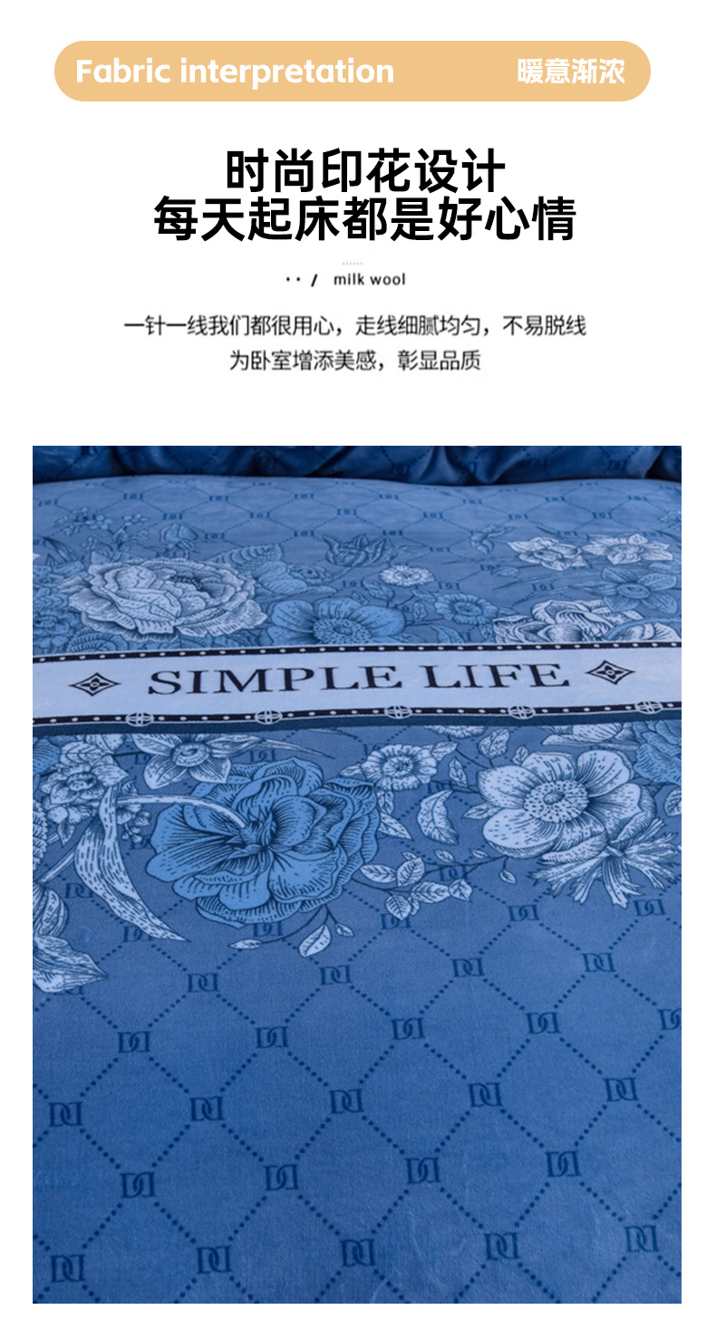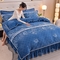 晚静家纺 2024新款8.5斤牛奶绒金貂法莱绒床裙款保暖绒四件套 深蓝花朵