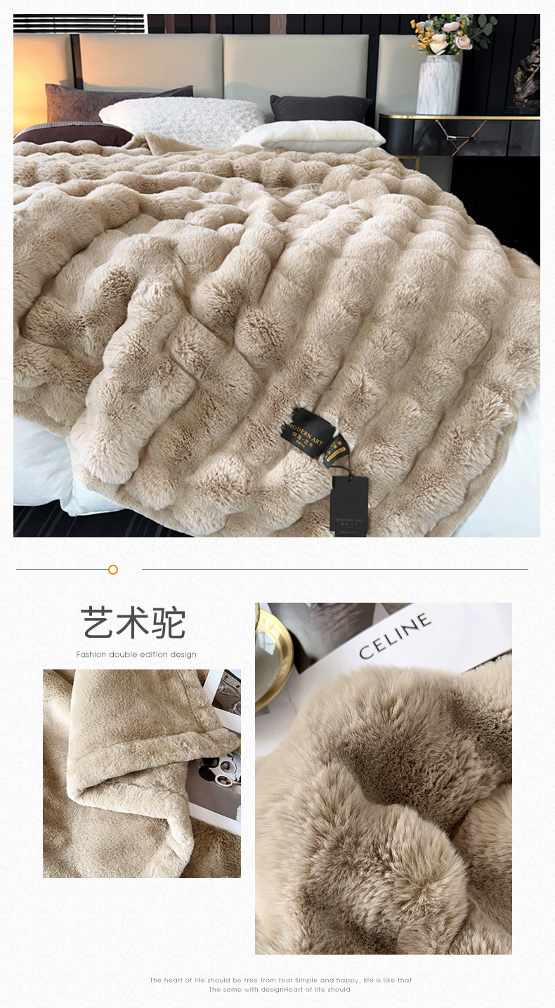 商品名称:2025新款仿皮草摩登艺术毛毯毯子子家用毛毛毯毯子四季盖毛毯毯子 艺术驼