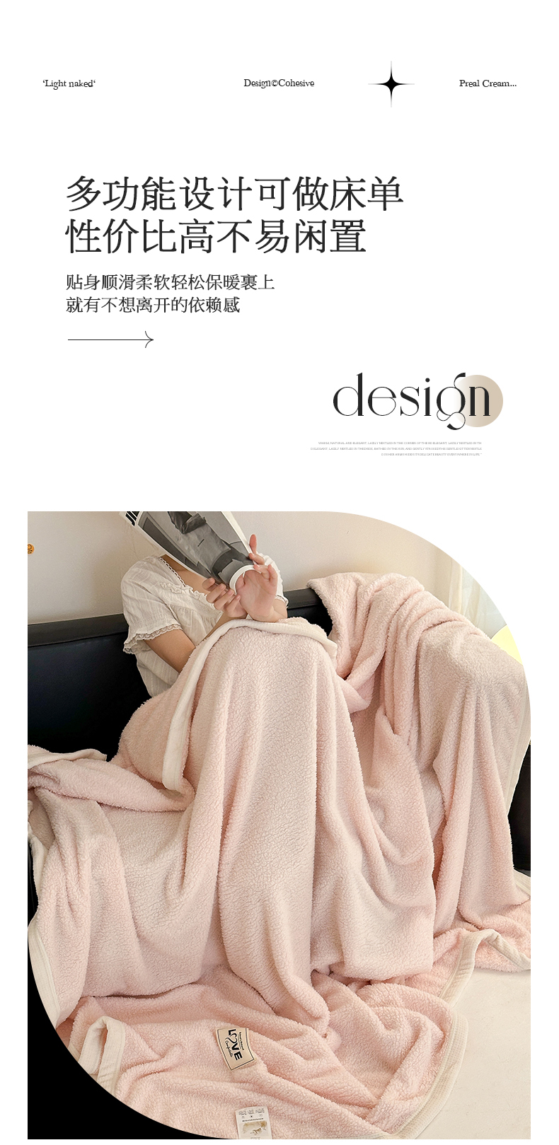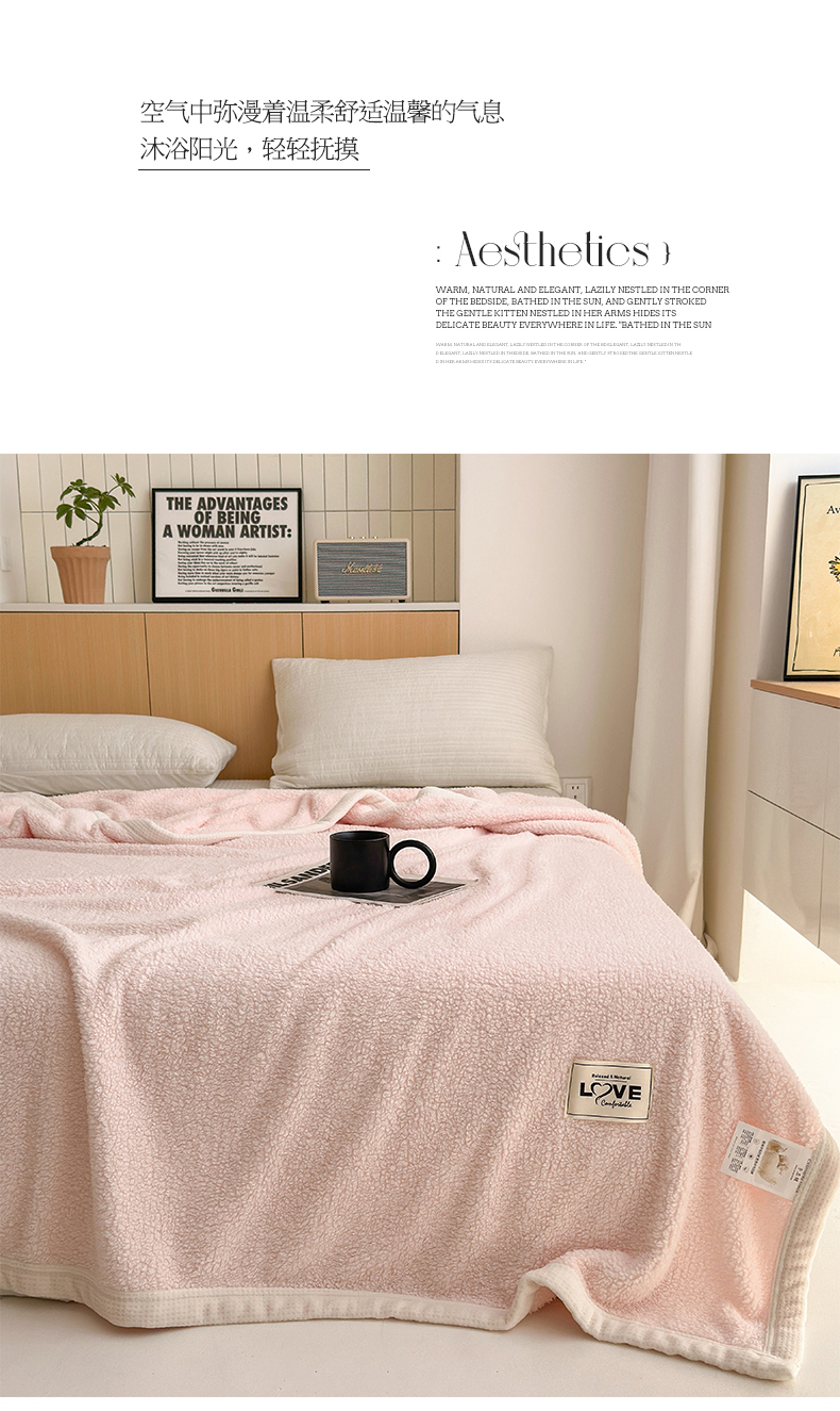 商品名称:沐棉 2024新款牛奶绒菠萝格包边羊羔绒泰迪绒毛毯-静物图 浅粉色