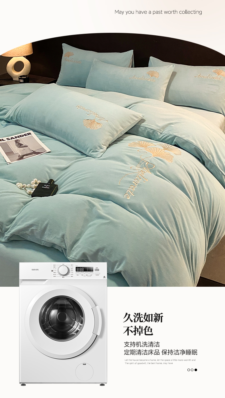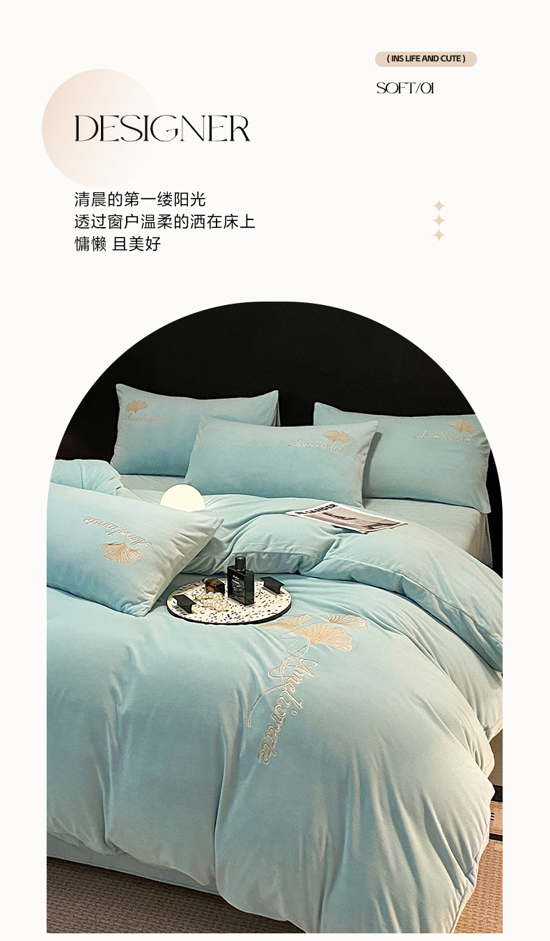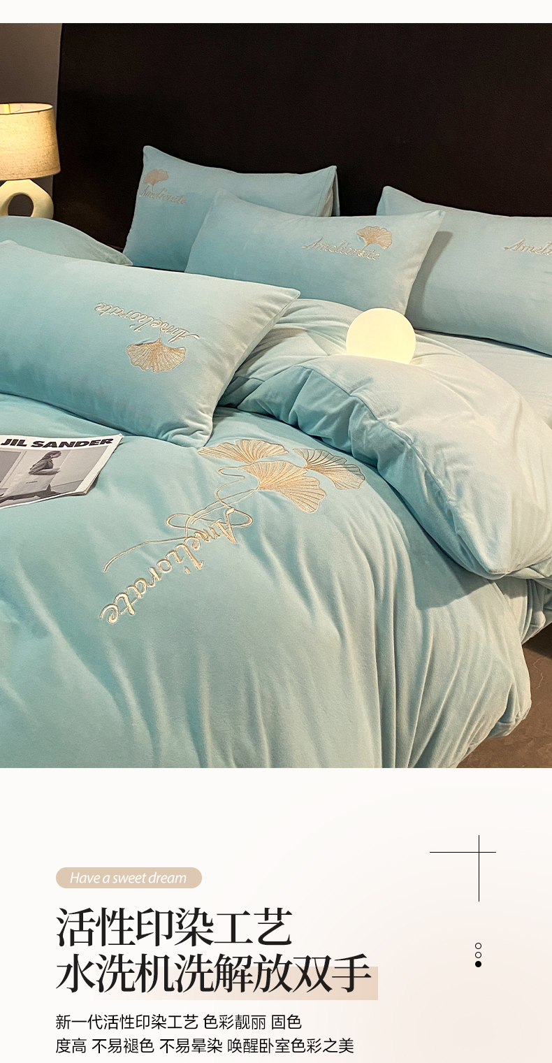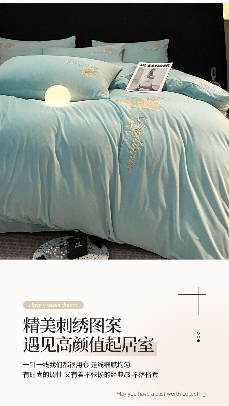 2024新款水晶绒纯色四件套-银杏系列 银杏-梵星兰