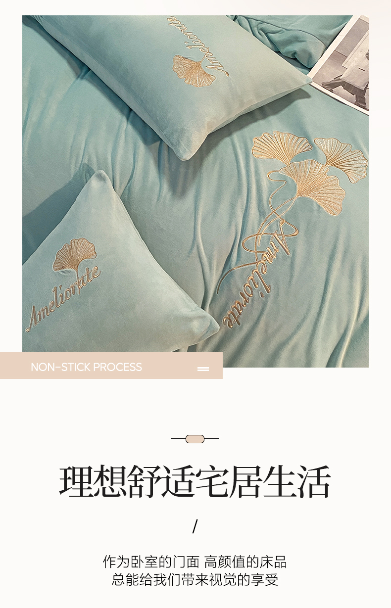 商品名称:2024新款水晶绒纯色四件套-银杏系列 银杏-梵星兰