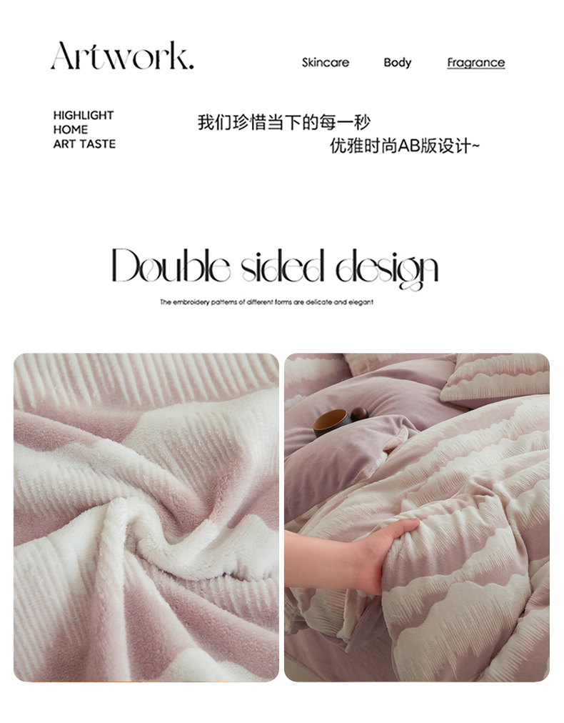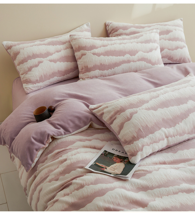 商品名称:菡宝 2024新款雕花绒230g全消光牛奶绒单被套-行云流水 行云流水-豆紫