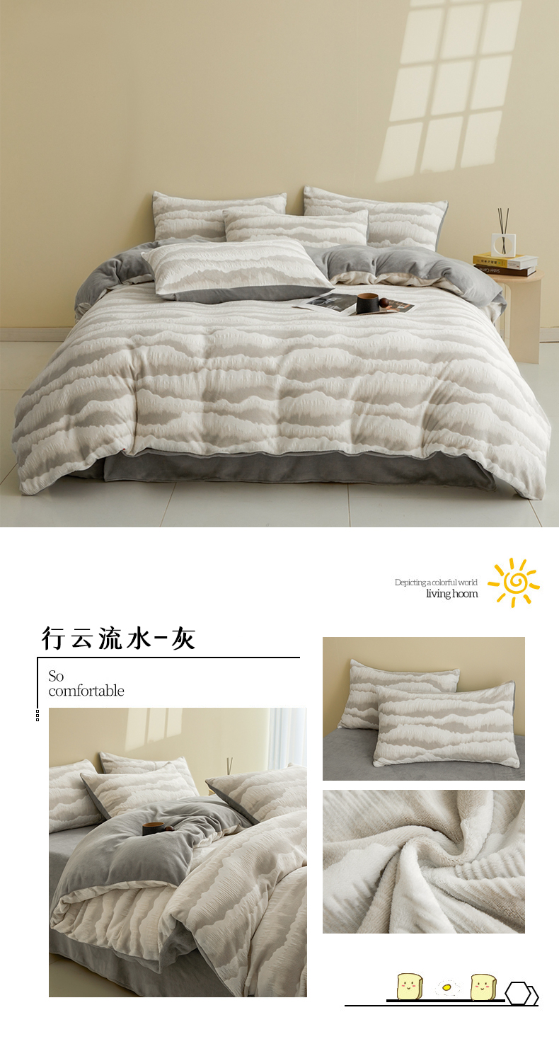 (总)菡宝 2025新款简约良品风牛奶绒四件套-查尔斯系列 支持定做定制尺寸,查尔斯-灰,查尔斯-卡其,卡伦