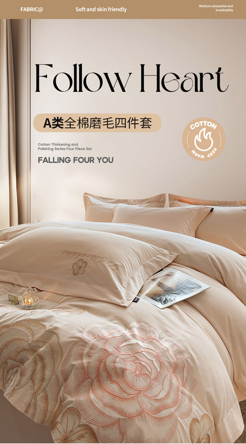 (总)A类加厚保暖全棉磨毛四件套纯棉重工刺绣轻奢风床单被套纯色新疆棉冬季床上用品-晨光蝶语,晨光蝶语-白桃,晨光蝶语-茶绿,晨光蝶语-红桃,晨光蝶语-莓蓝