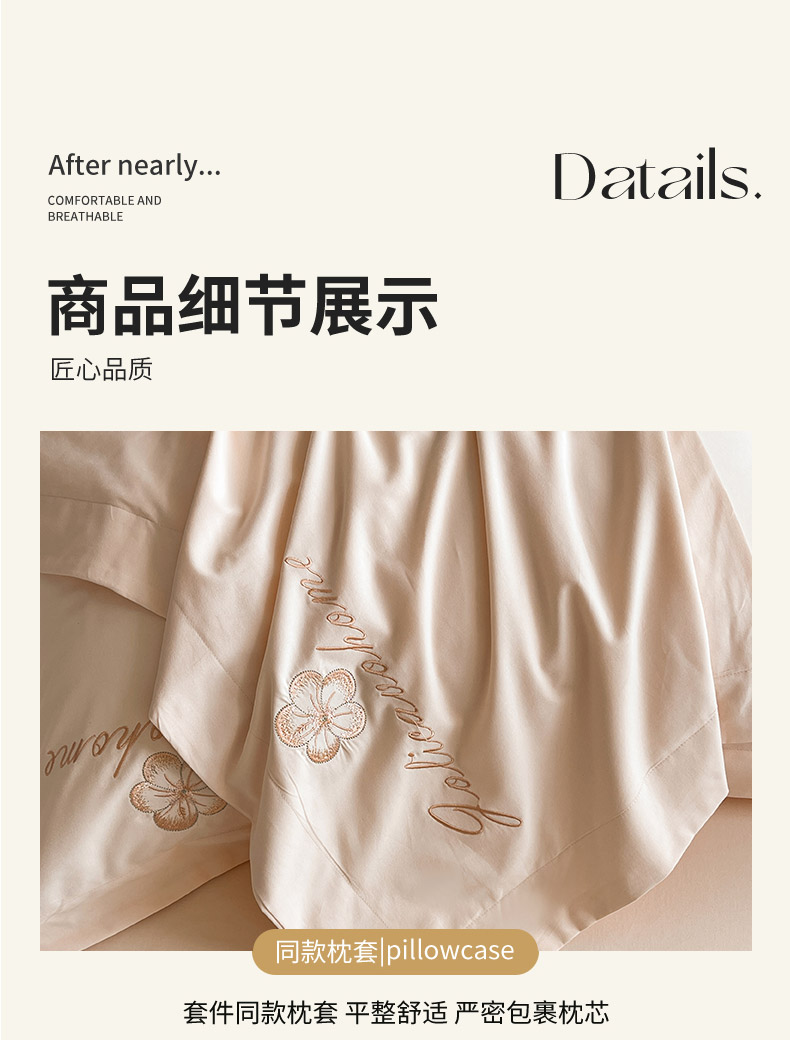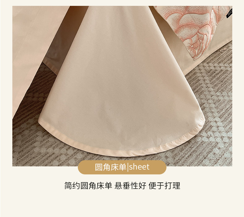 商品名称: 【秋冬爆款】A类母婴级全棉磨毛四件套纯棉重工刺绣花轻奢风床单床笠款新疆棉高奢床上用品 缇菲-白桃