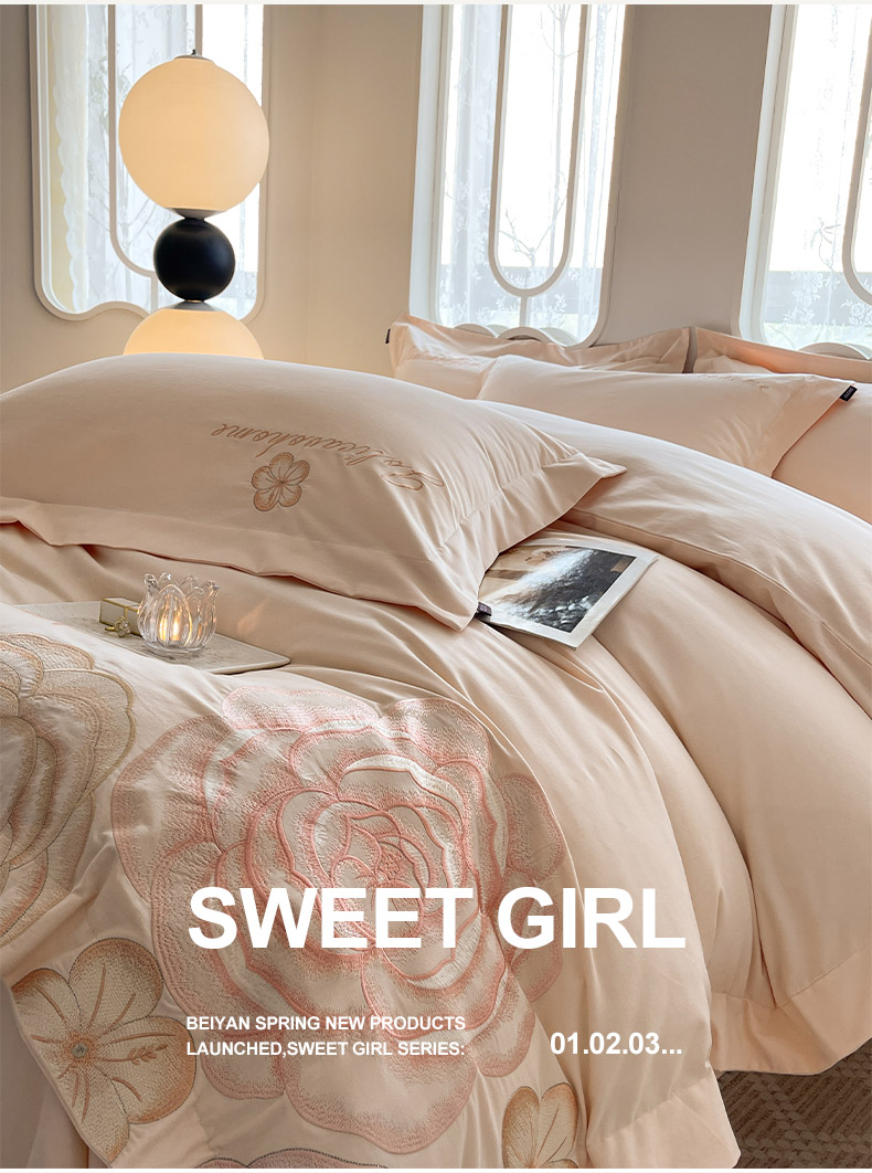 (总) 2025春夏长绒棉四件套纯棉全棉轻奢风床单被套重工刺绣床上用品,芊羽梦-白粉,芊羽梦-茶绿,芊羽梦-黛紫,芊羽梦-慕蓝,芊羽梦-颜粉
