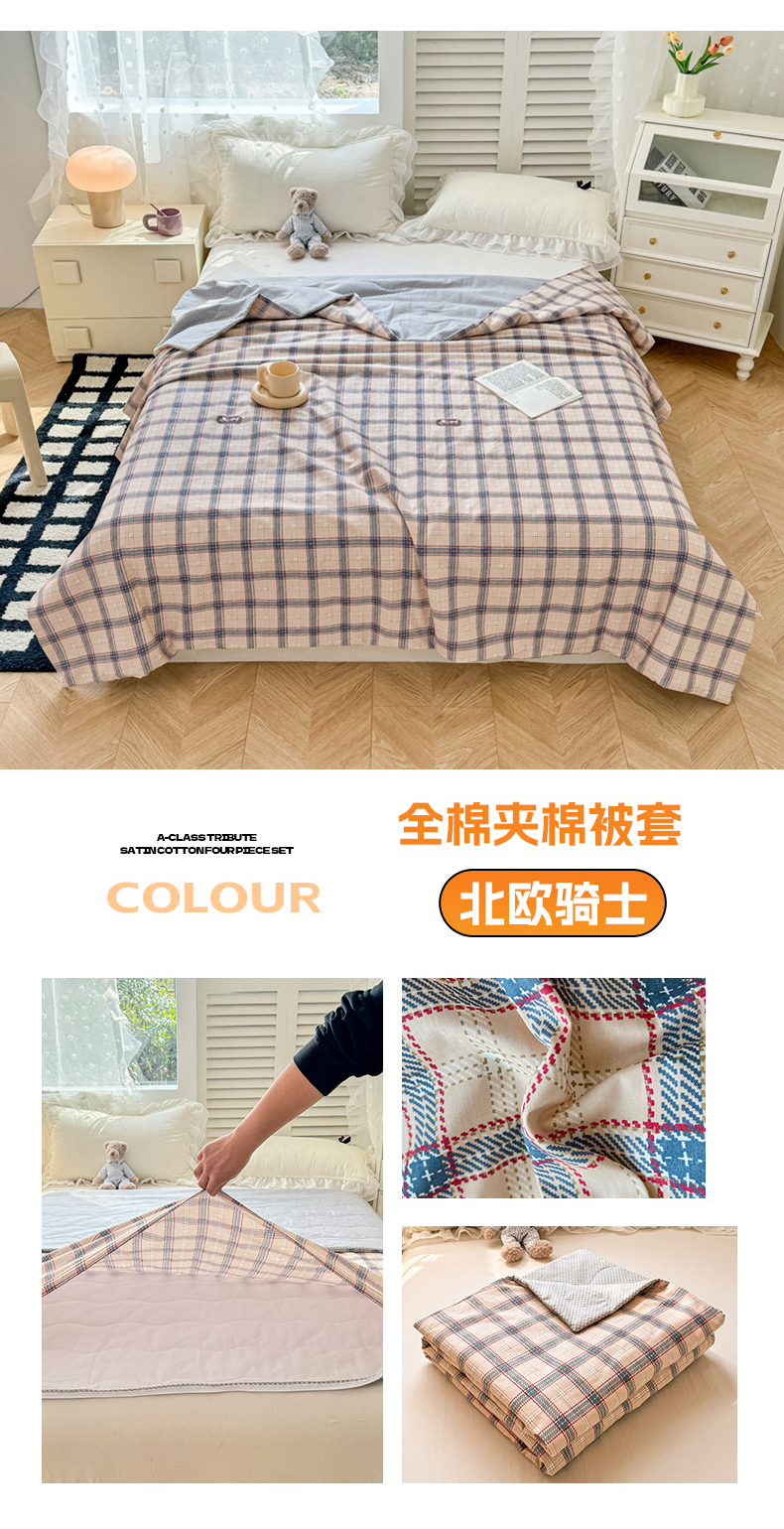 (总)舒慕家纺 2025新款全棉单被套全棉夹棉被套夹棉四件套,安德里,北欧骑士,朵彩,花恬梦,简秋,蓝山格调,马卡龙,美莱,美式庄园,柠檬伊夏,圣诞兔,晚柠,运动熊仔