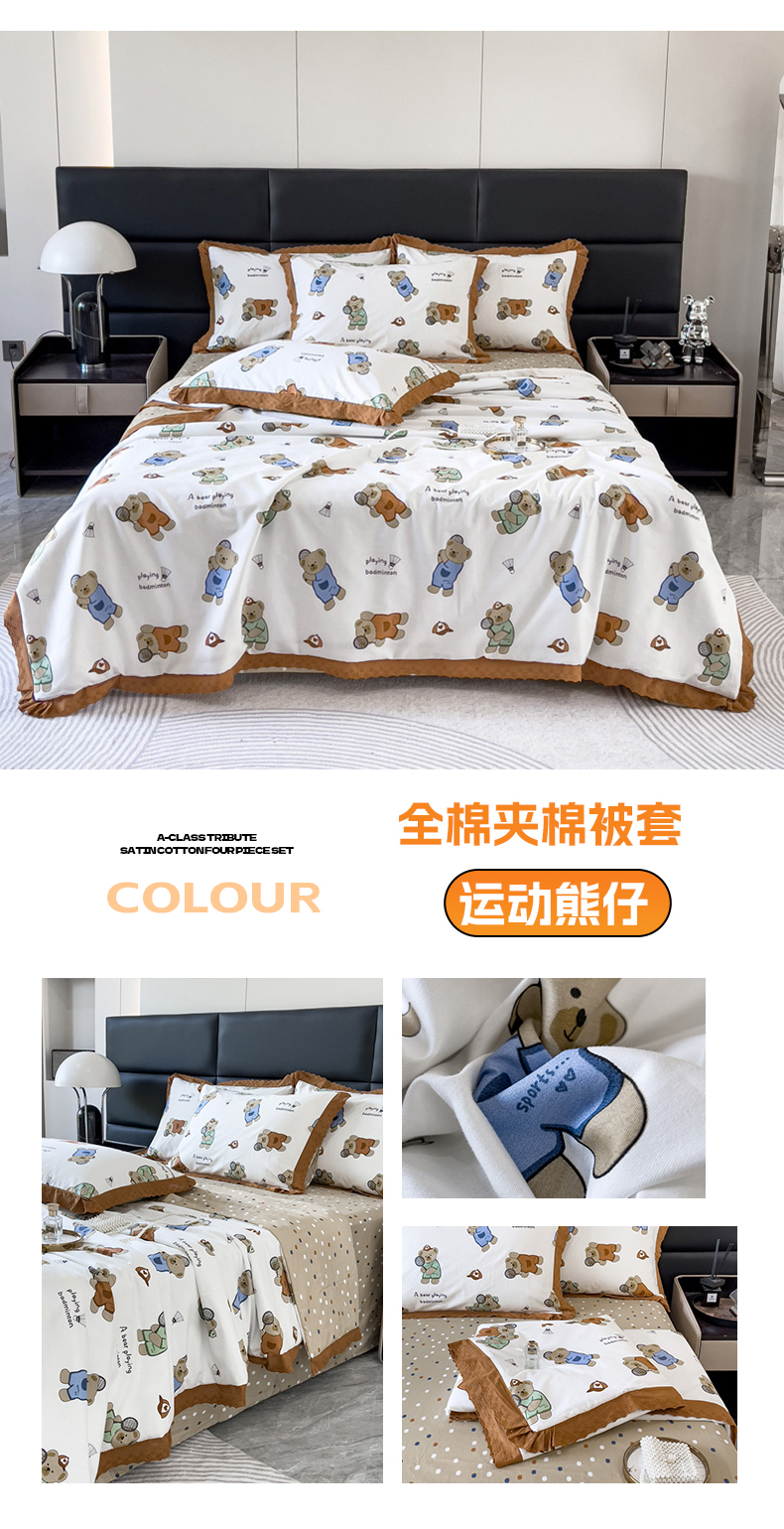 商品名称:舒慕家纺 2025新款全棉单被套全棉夹棉被套夹棉四件套 运动熊仔
