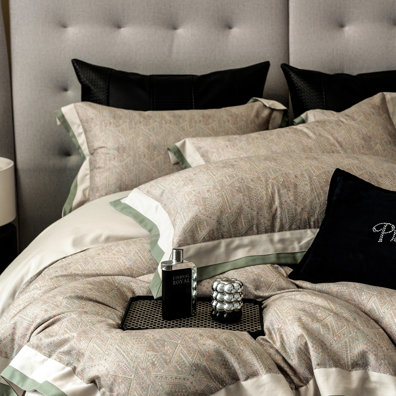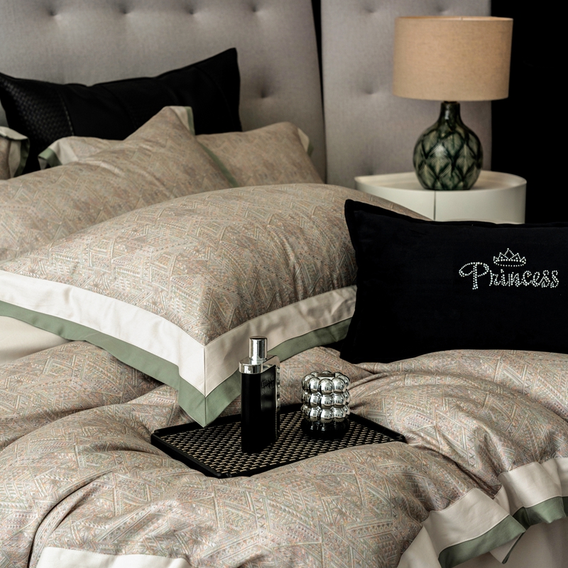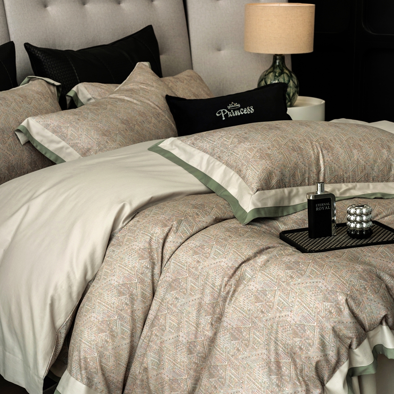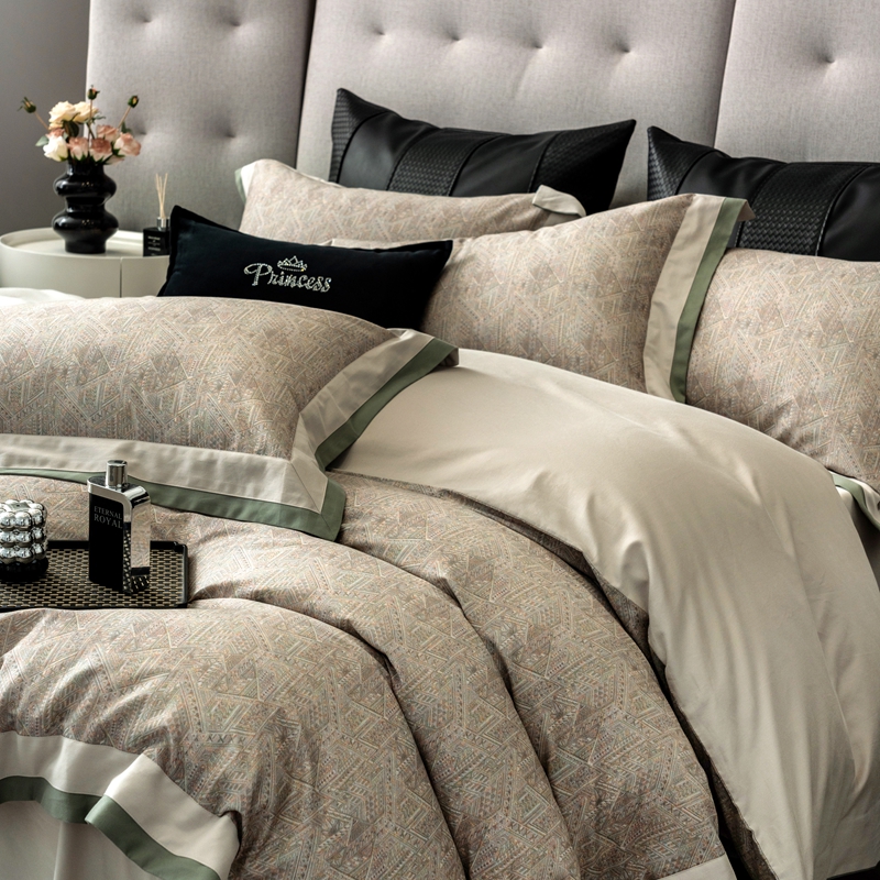 (总)时亿 2023新款100支长绒棉四件套苍兰之约,苍兰之约-橙,苍兰之约-绿