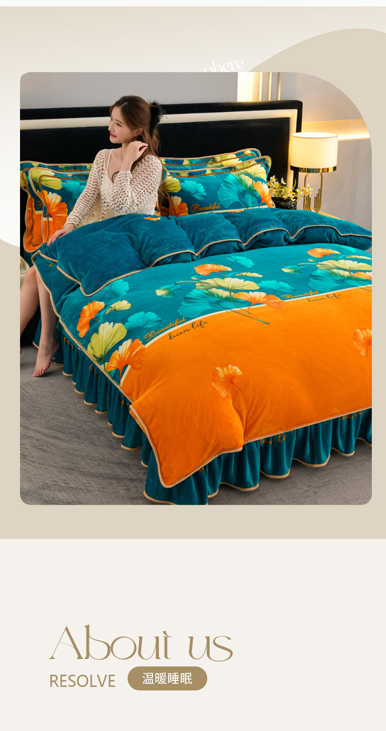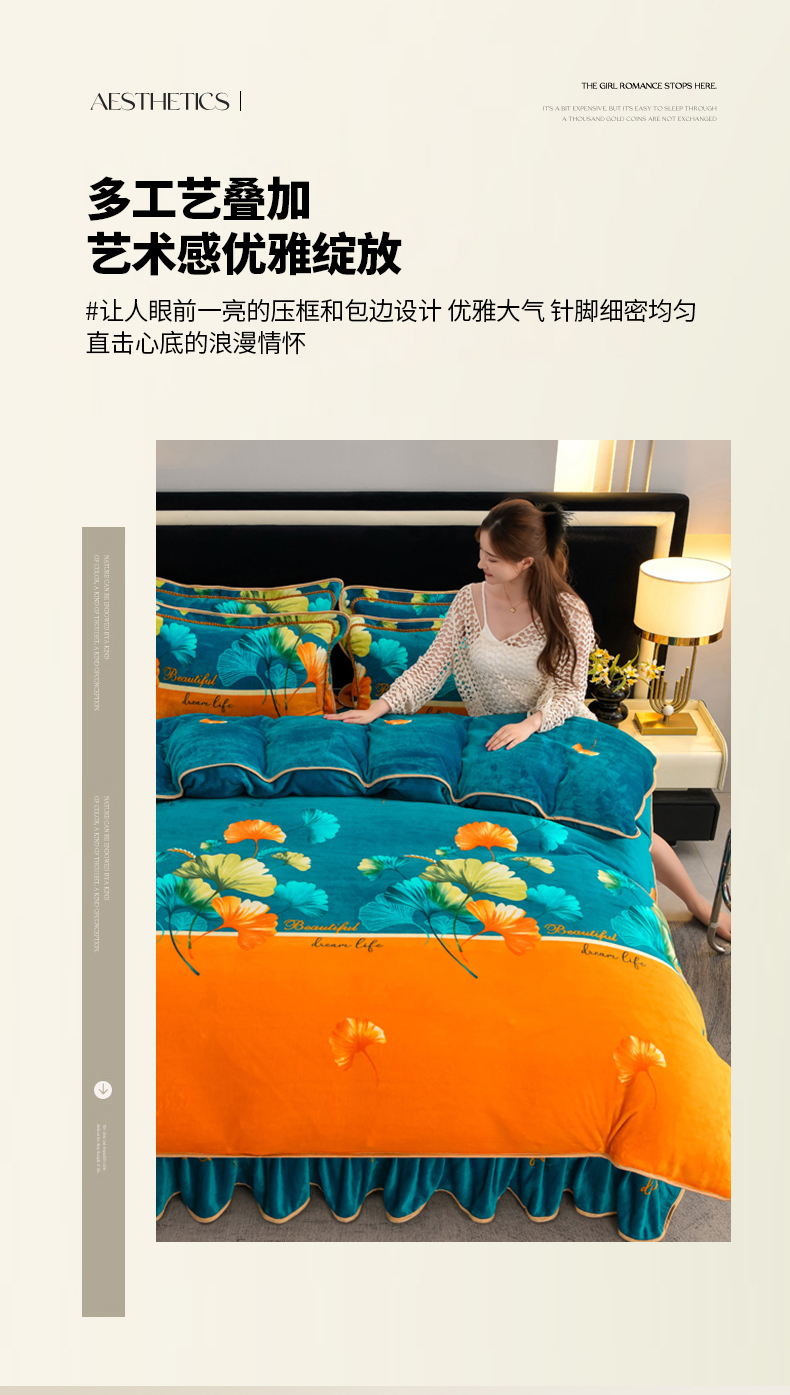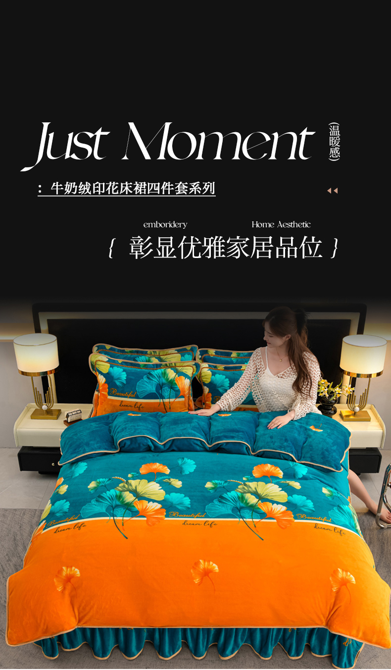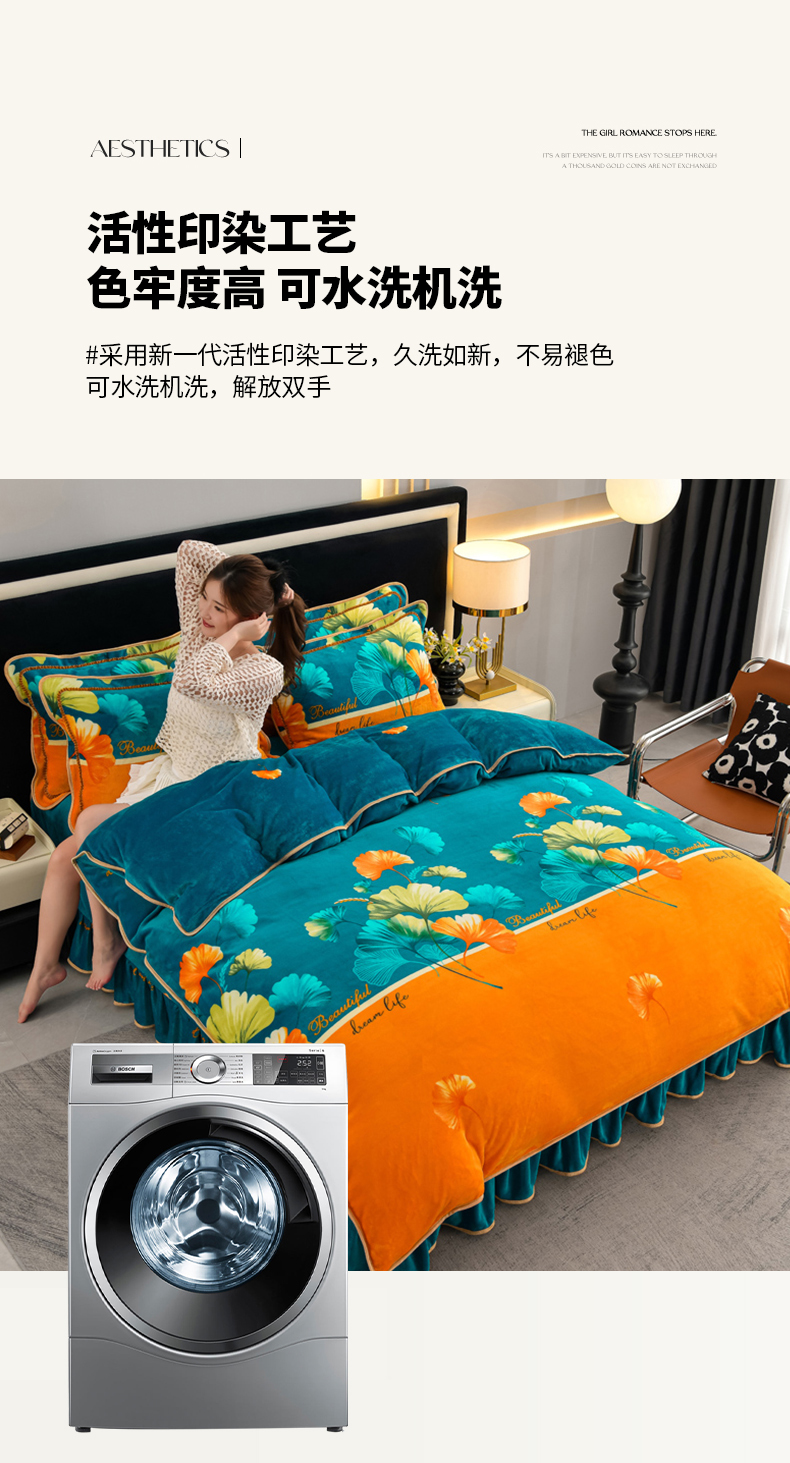 2025新款牛奶绒印花床裙四件套系列-四件套 银杏叶