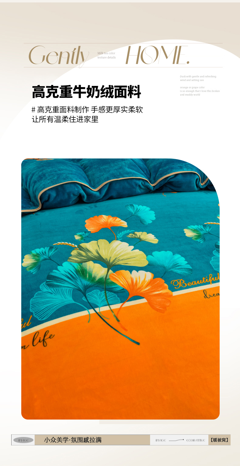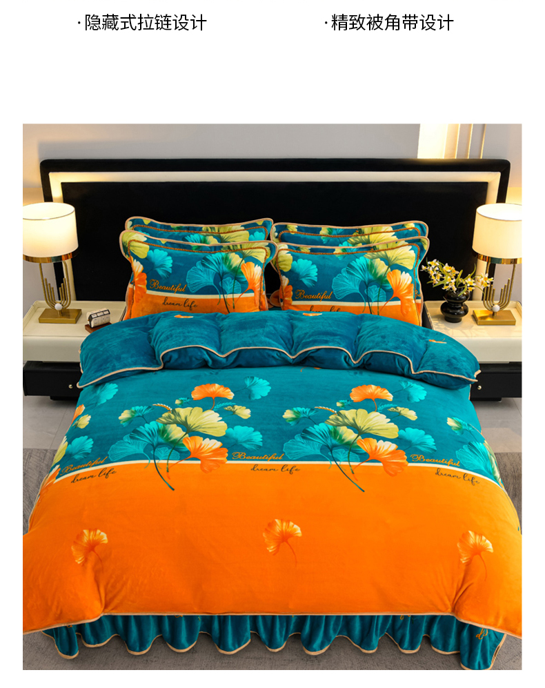 商品名称:2025新款牛奶绒印花床裙四件套系列-四件套 银杏叶